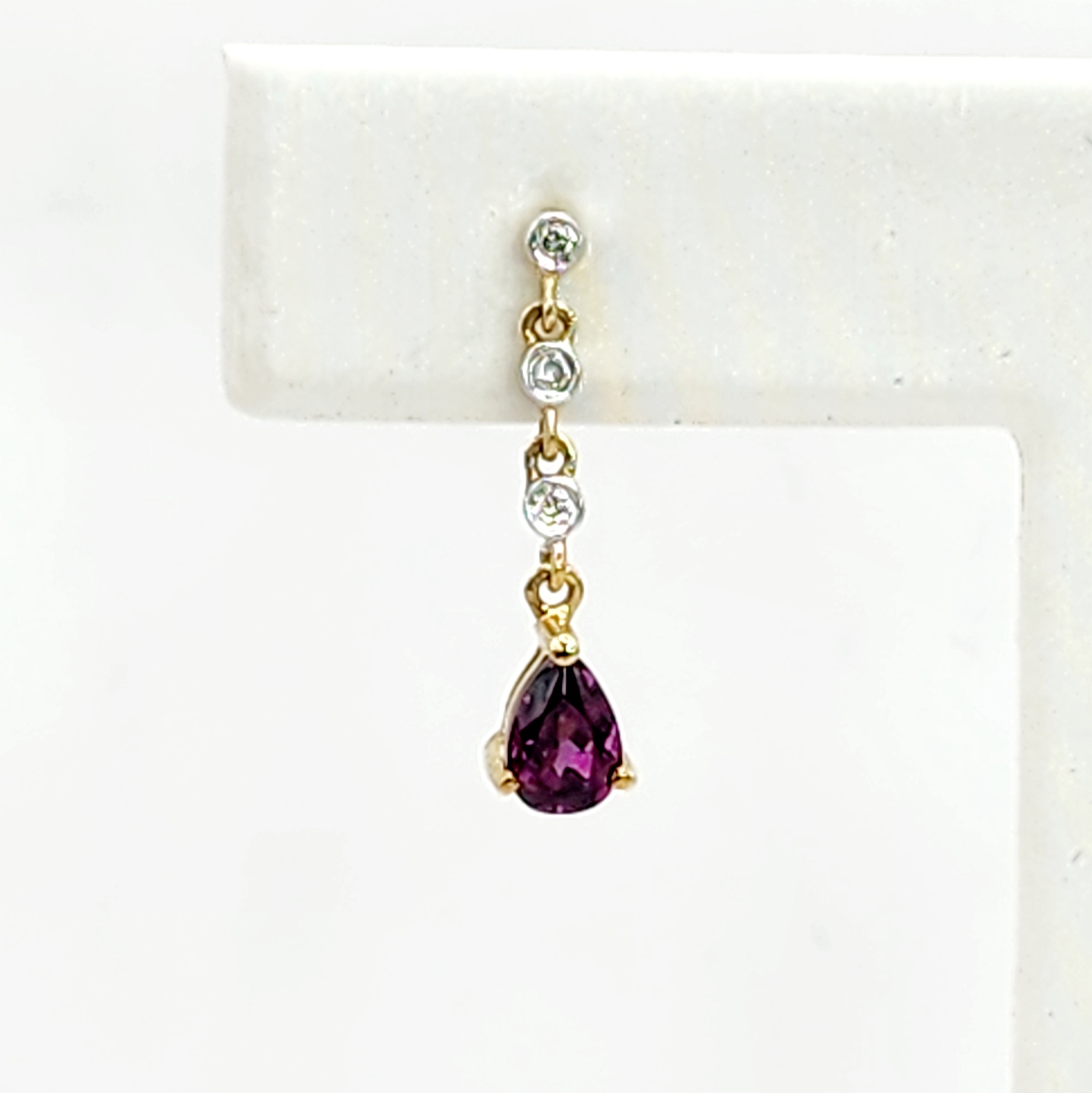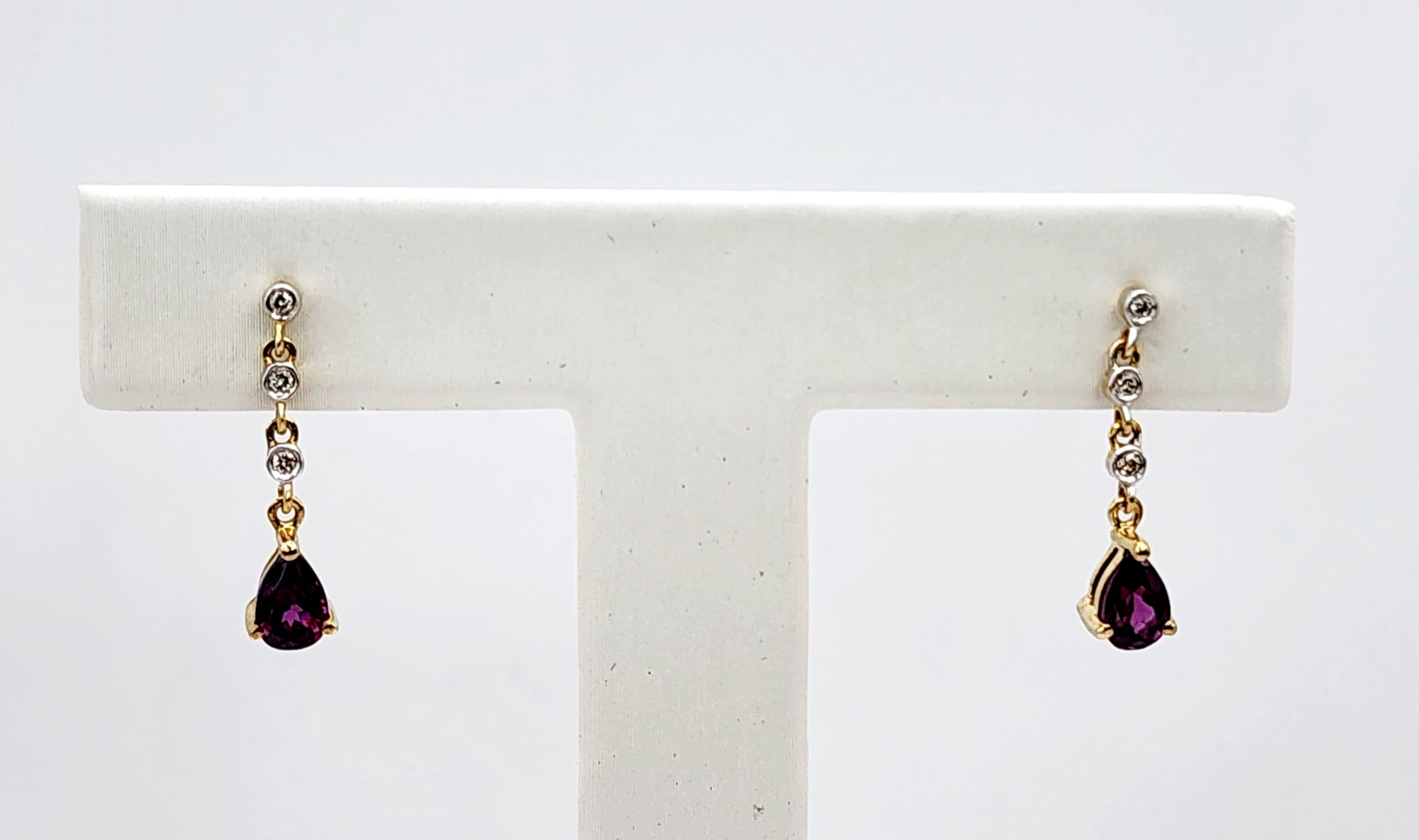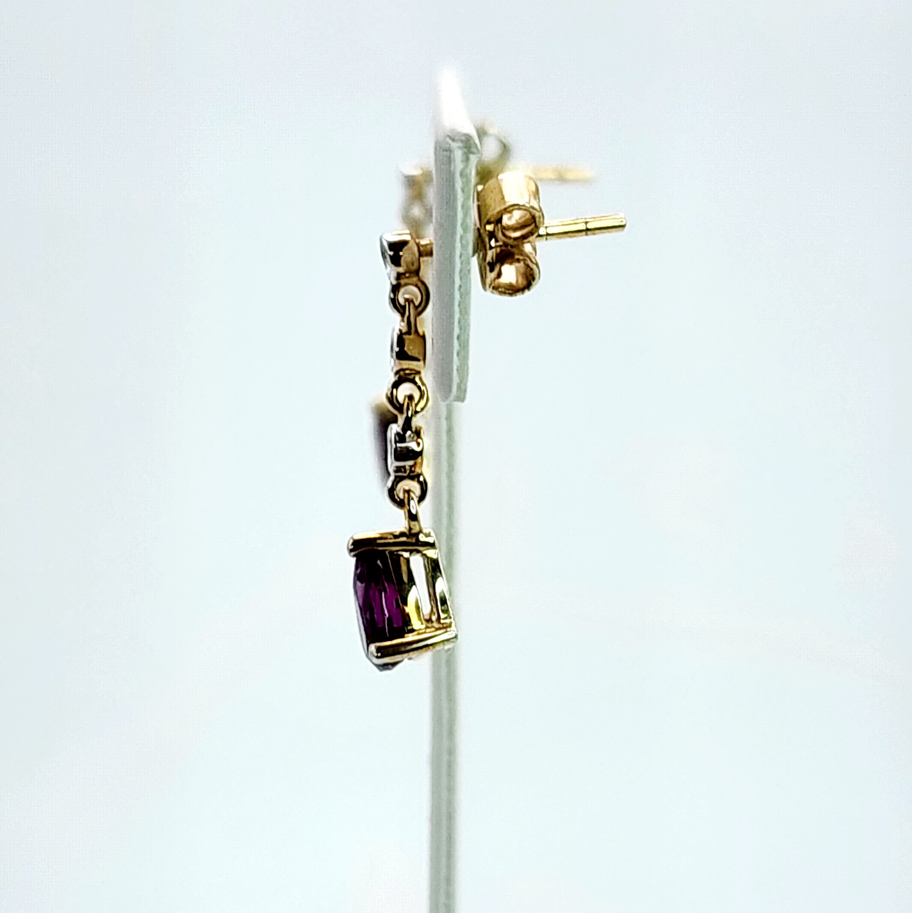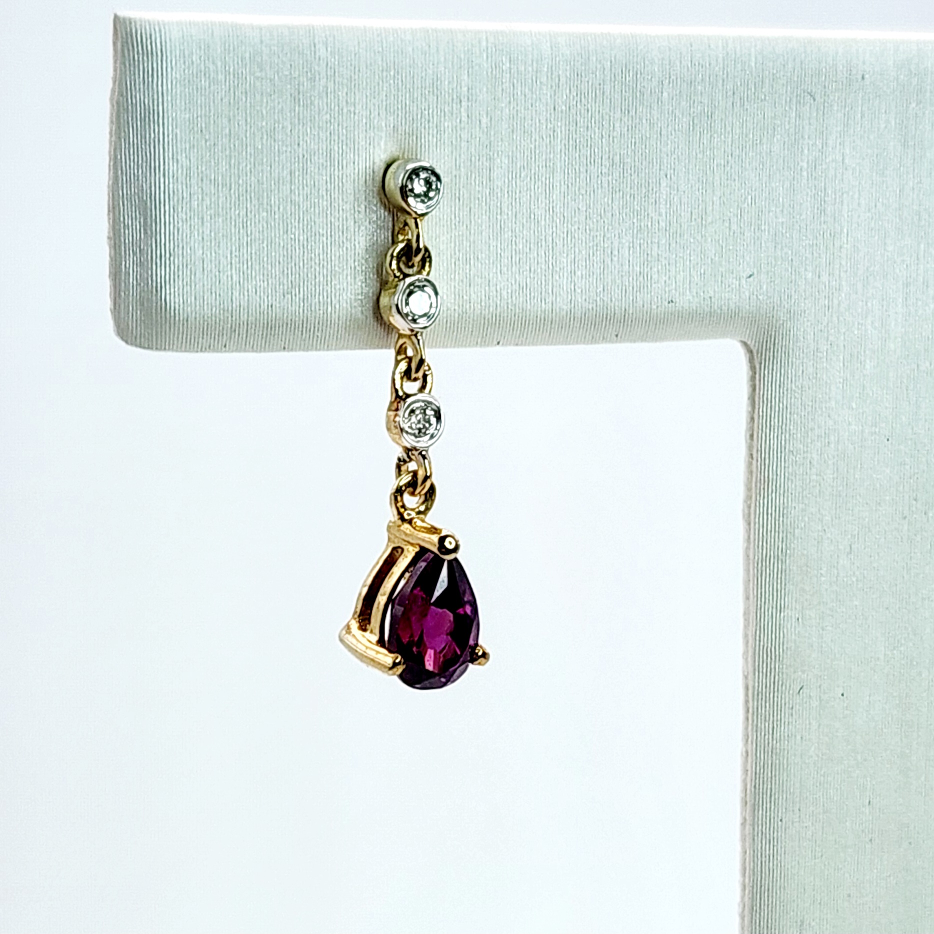 Pear-Shaped Rhodolite Garnet & Diamond Drop Earrings in 9ct Yellow Gold