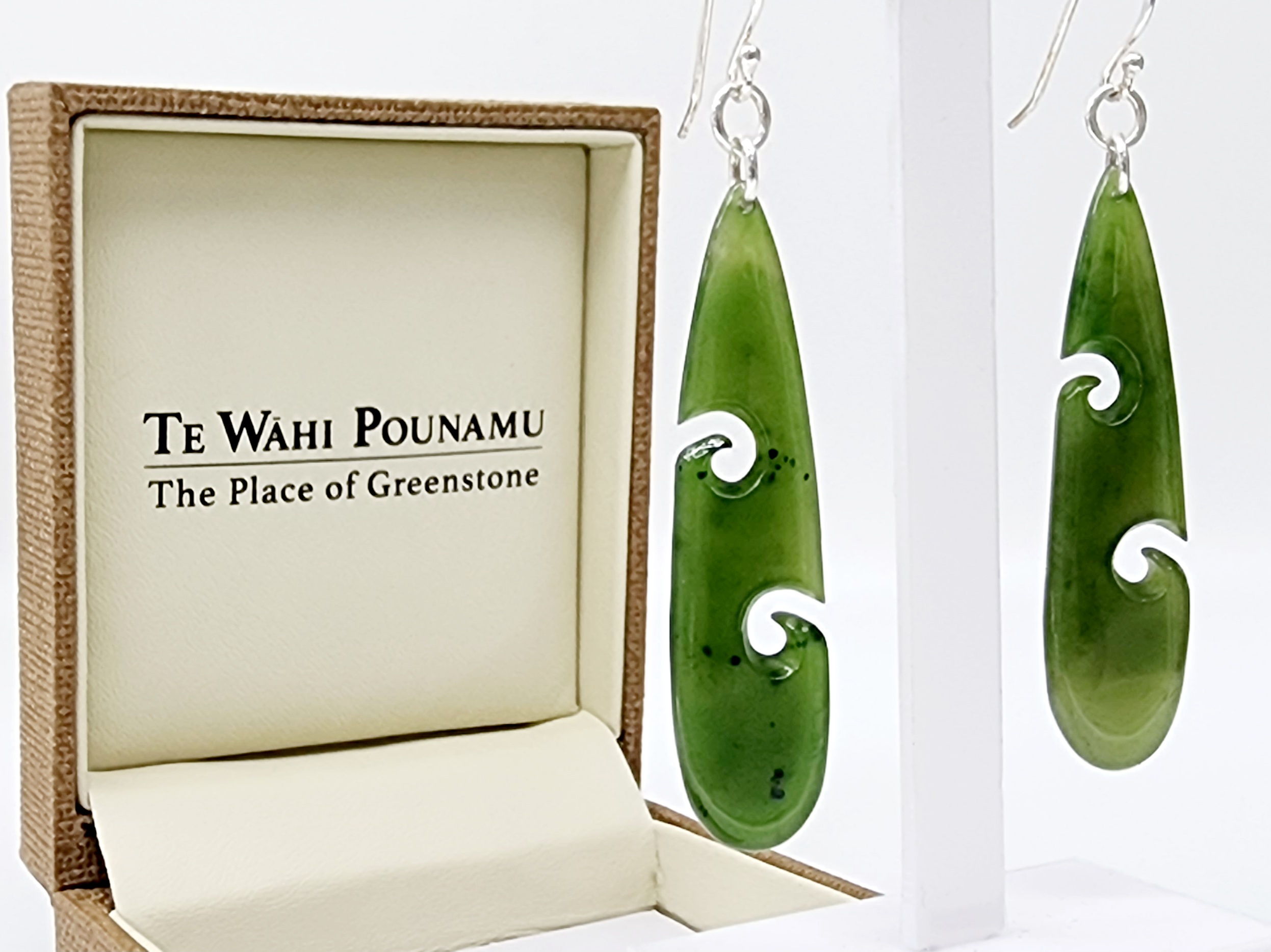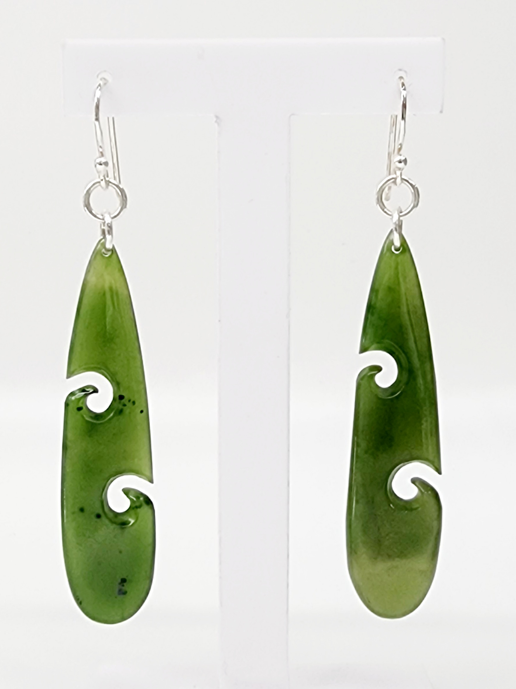 Pounamu Double Koru Drop Earrings with Sterling Silver Setting and Hooks – DPZ/3