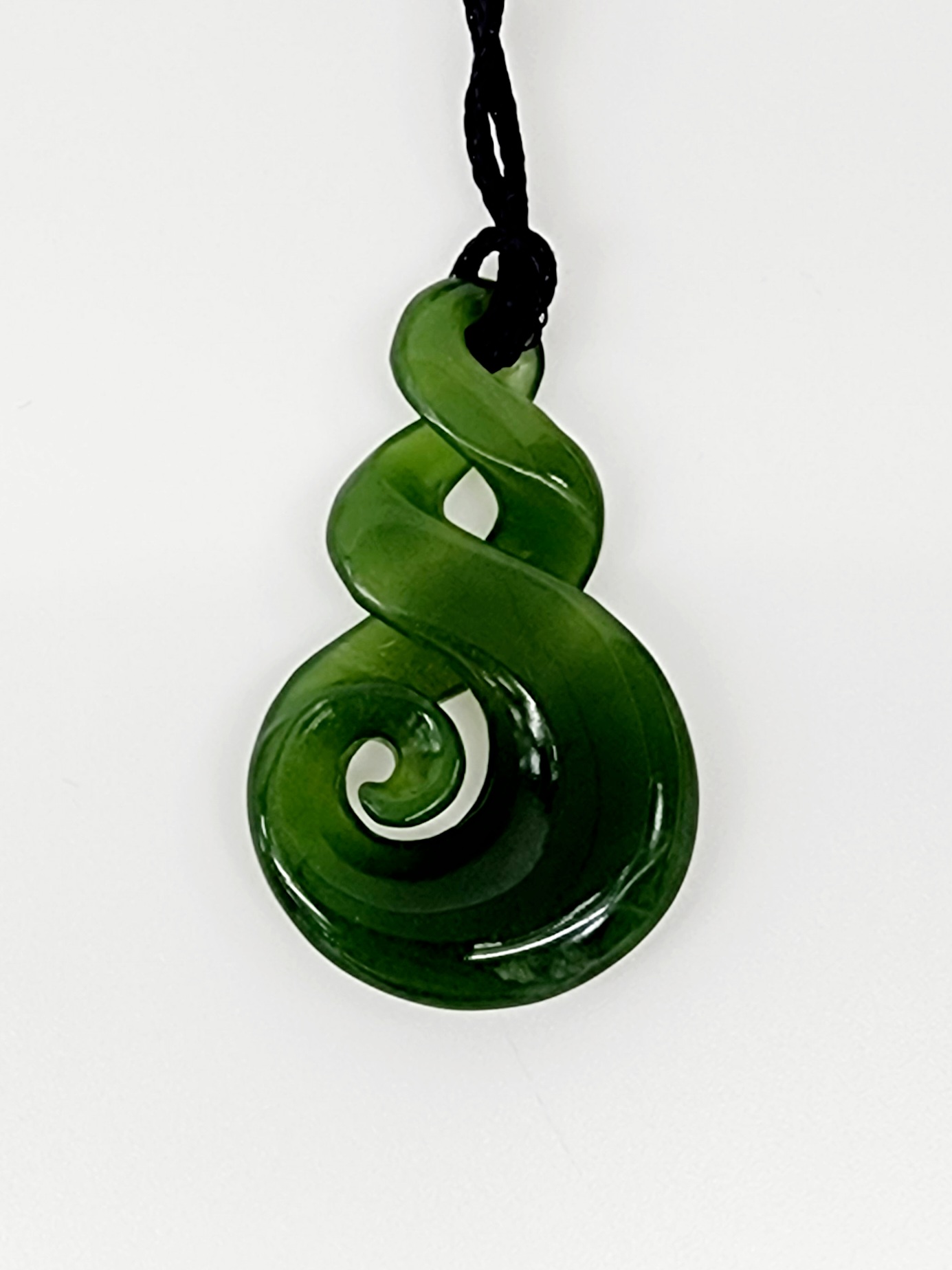 Pounamu Double Pikorua (Twist) with Koru Necklace