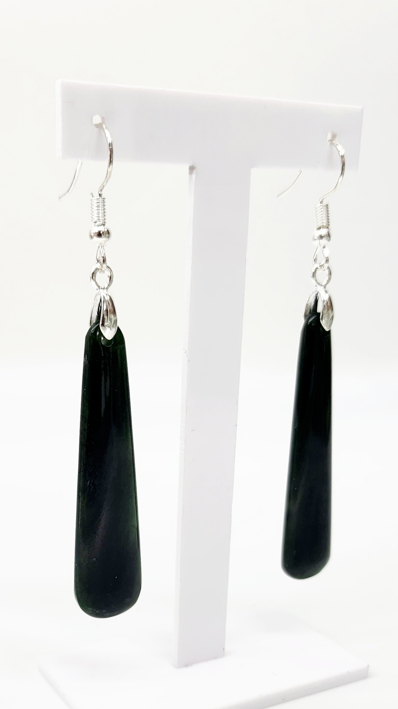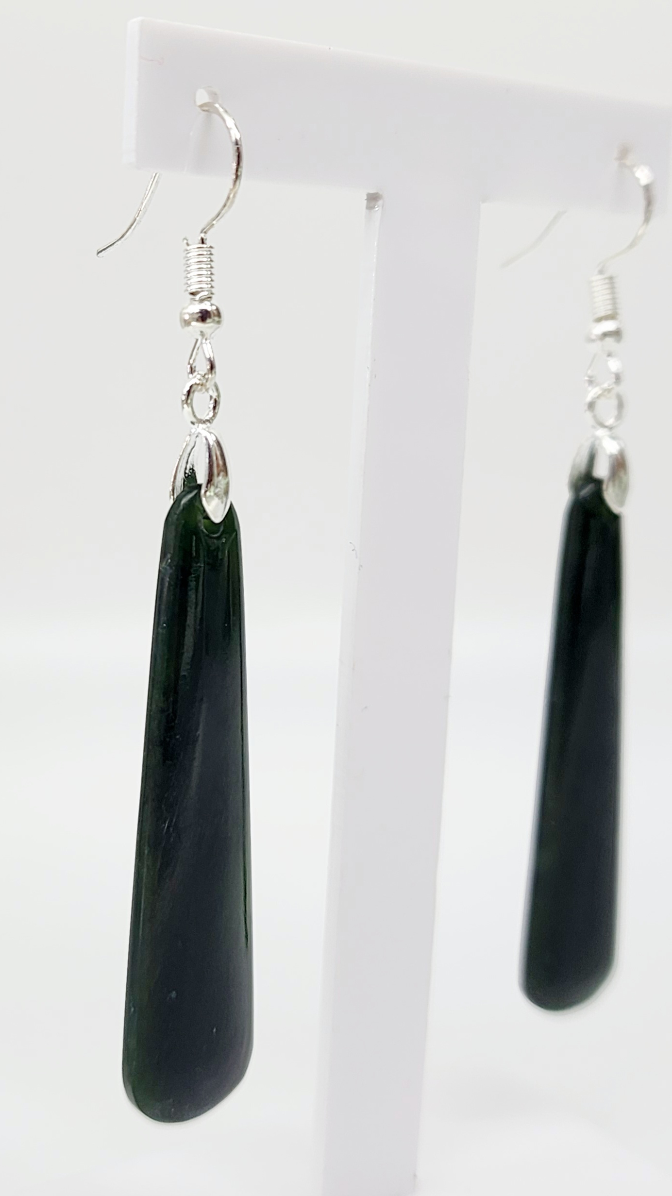 Pounamu Drop Earrings with Sterling Silver Setting and Hooks – ED1.32