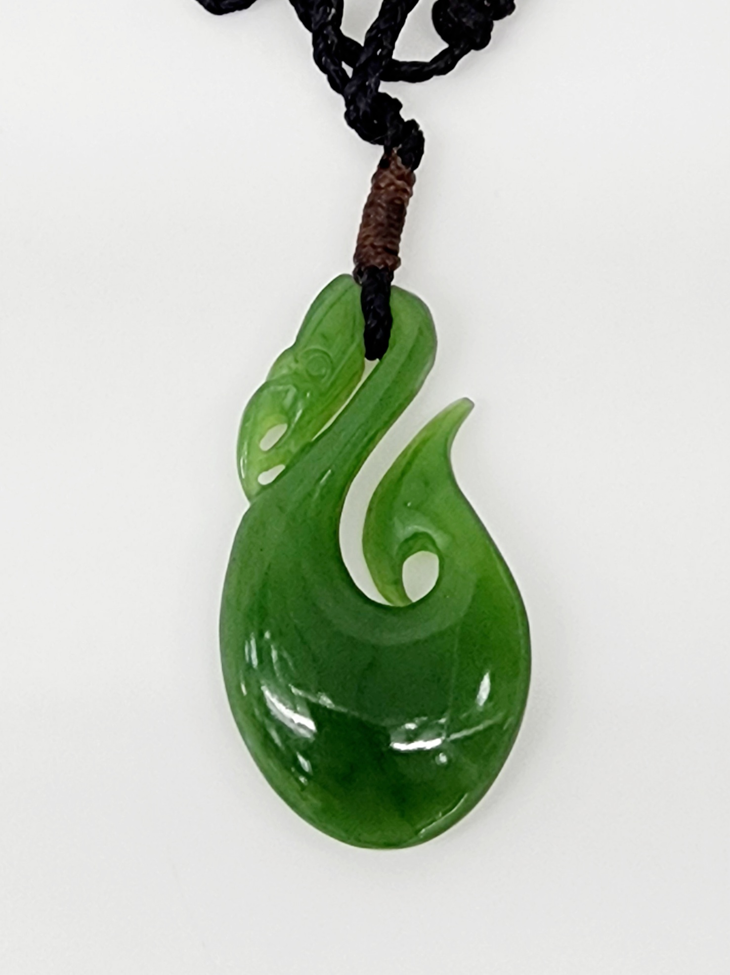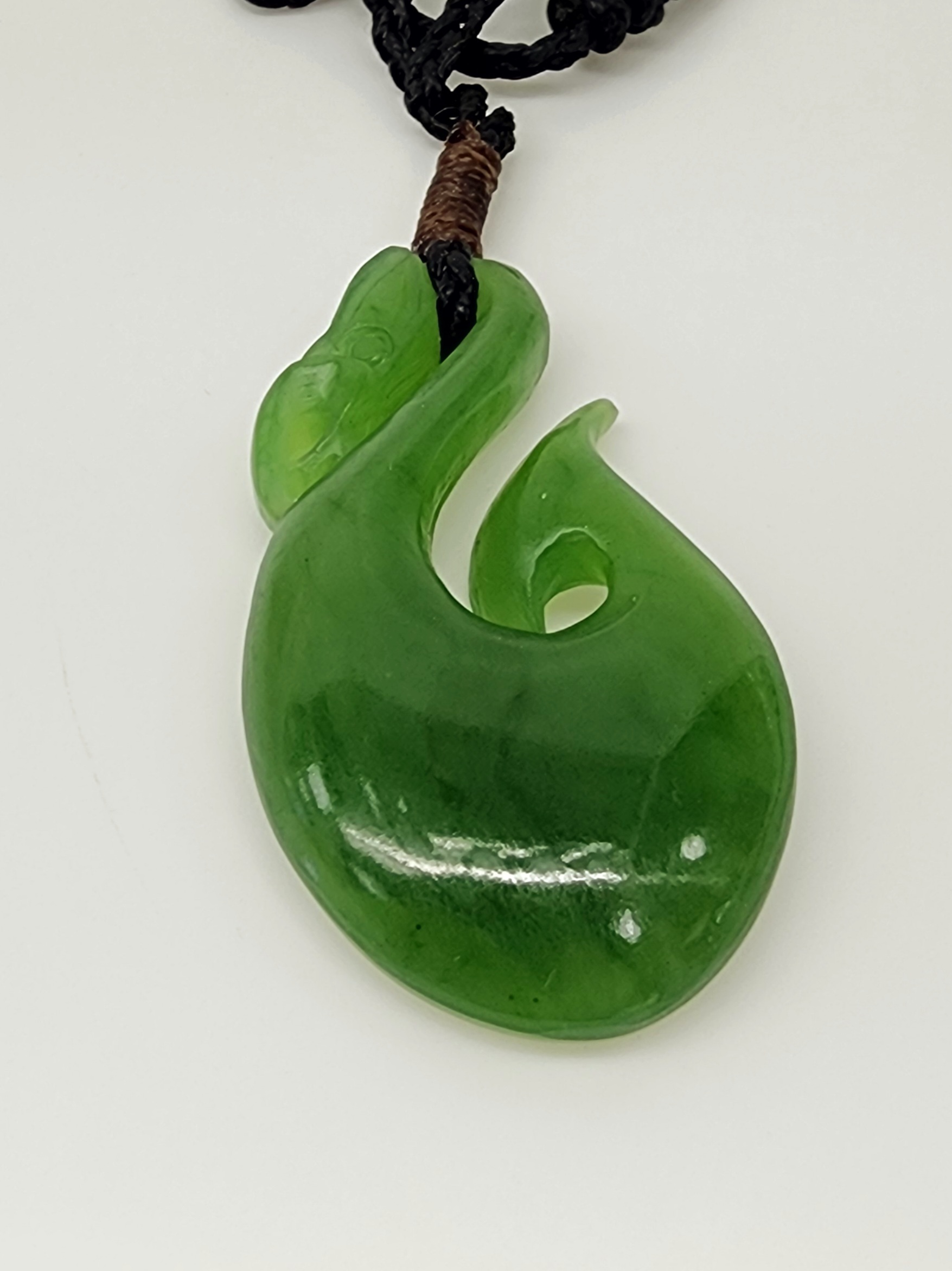Genuine New Zealand Pounamu (Greenstone), sourced and hand carved in Aotearoa (New Zealand). Pounamu is of great cultural significance for Maori and is believed to enhance mana (prestige) of its possessor. This intricate, hand-carved pendant of New Zealand Pounamu is an elegant addition to any look, suspended from an adjustable cord.
