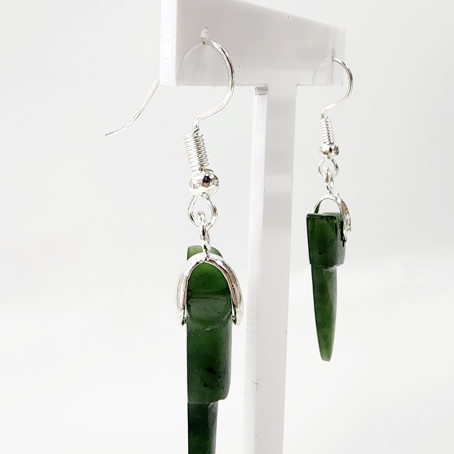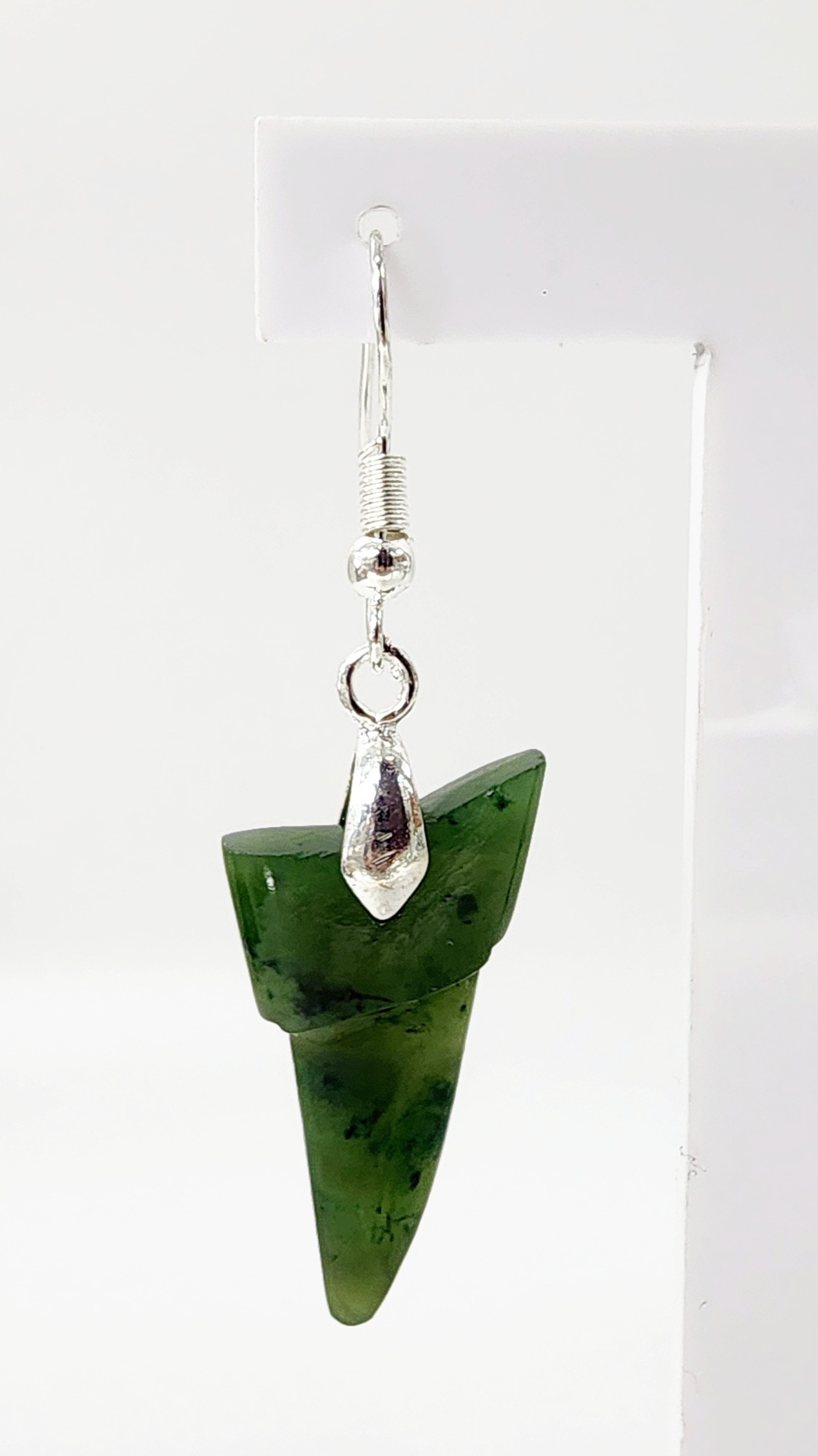 Pounamu Shark Tooth Shape Earrings with Sterling Silver Setting and Hooks – HPSTE.30