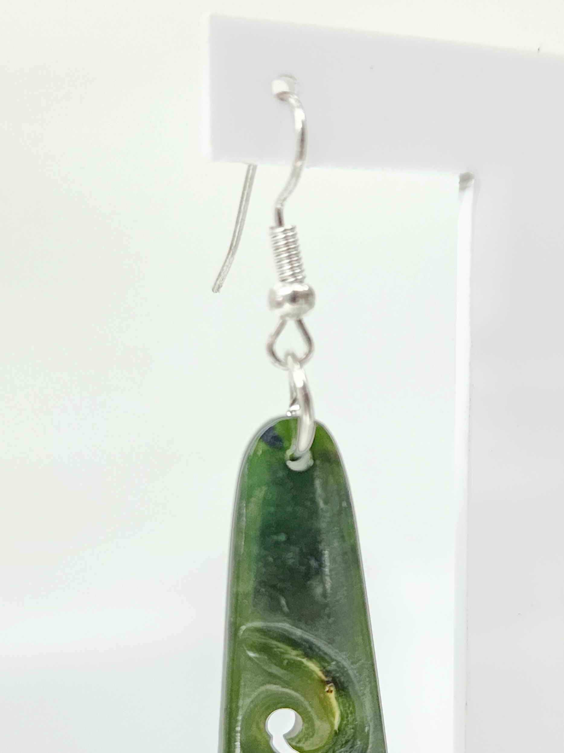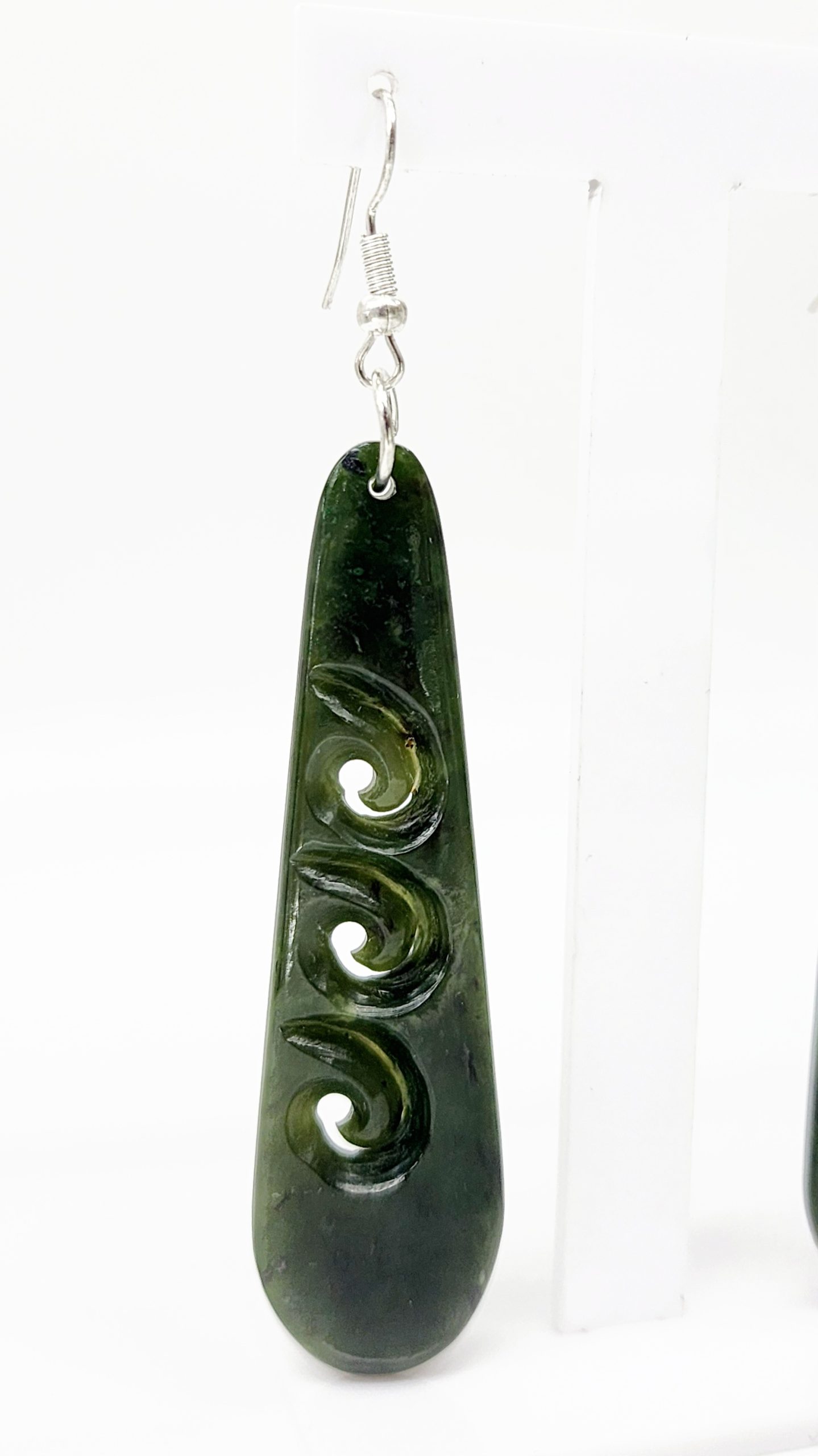 Pounamu Triple Koru Drop Earrings with Sterling Silver Setting and Hooks – EK3.45