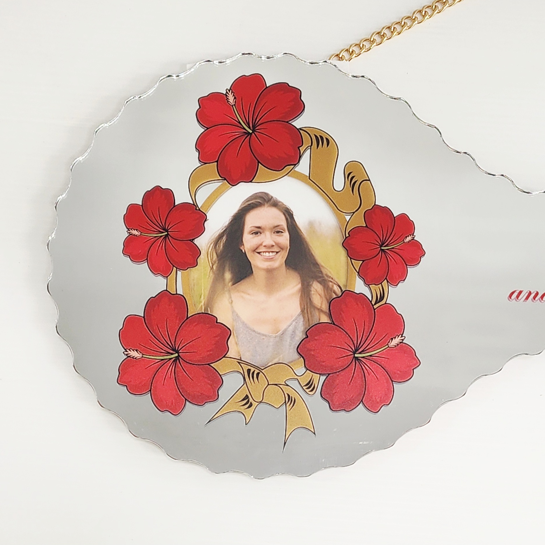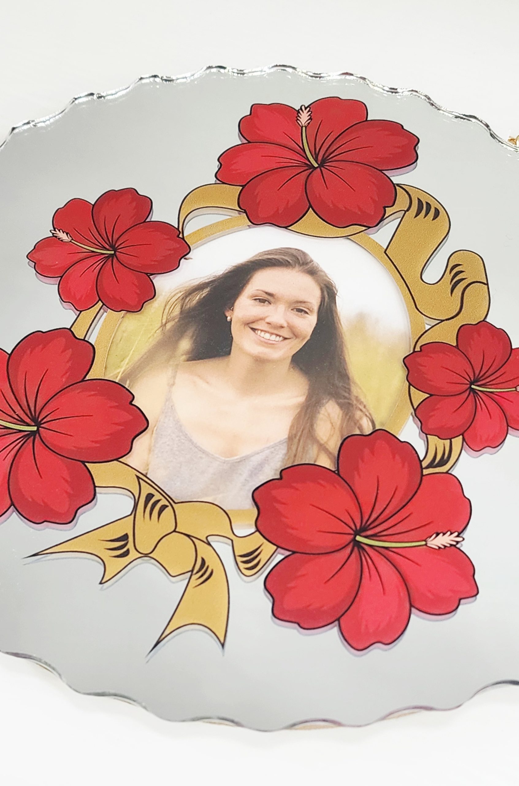 Red Hibiscus Flower with Golden Ribbon 21st Birthday Mirror Key – SJ2508