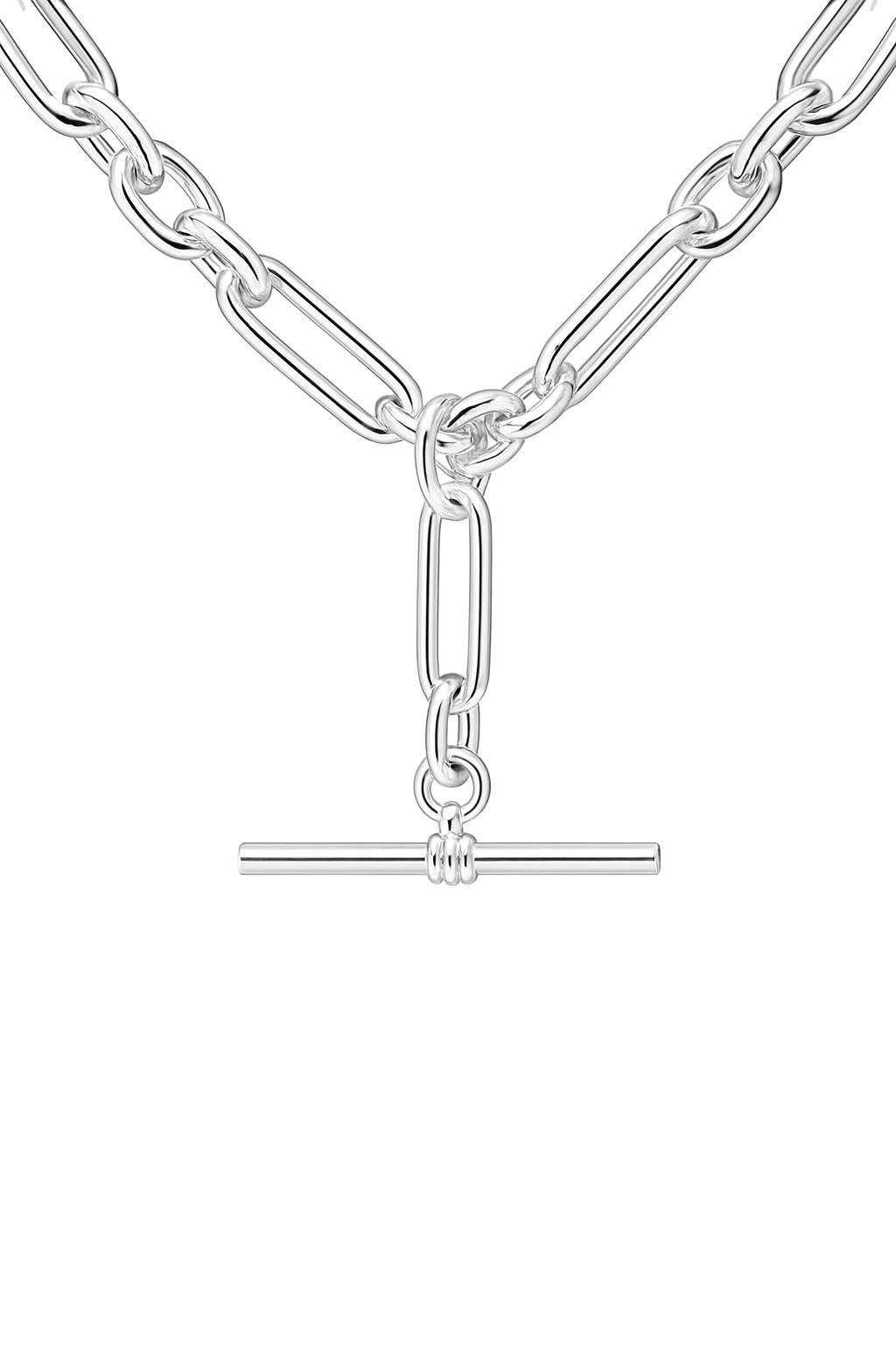 Design: Paperclip link chain with a classic T-bar drop