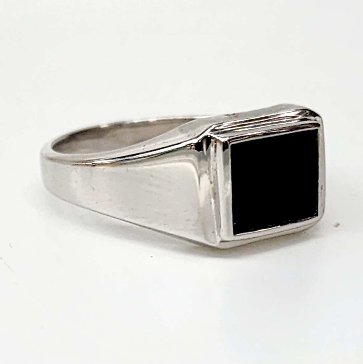 Introducing the Adrian Rectangle Black Onyx Ring, an elegant choice from the Stonex Jewellers Gents collection. This bold ring features a striking 10x8mm rectangle-shaped Black Onyx stone, bezel set for a sleek and modern look. Black Onyx symbolises strength and protection, making it a powerful addition to any wardrobe. Crafted with precision, this piece speaks to timeless masculinity and confidence. Ideal for daily wear or special occasions.