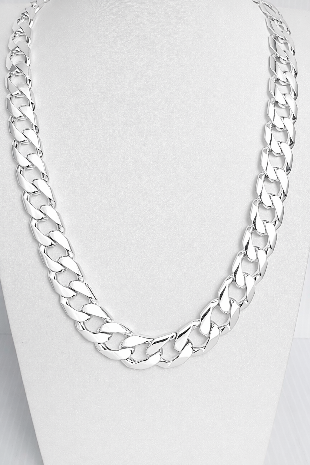 With an impressive 12.50mm width and 3.30mm thickness, it’s designed for customers who want a heavier, standout chain that can be worn on its own or paired with a pendant for extra presence. The mirror-like polish enhances the silver’s natural brilliance, giving the chain a crisp, vibrant finish suitable for both everyday wear and special occasions.