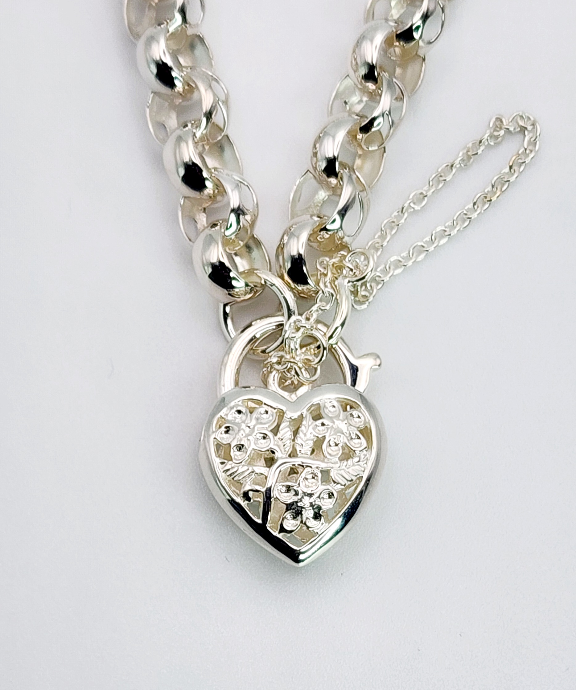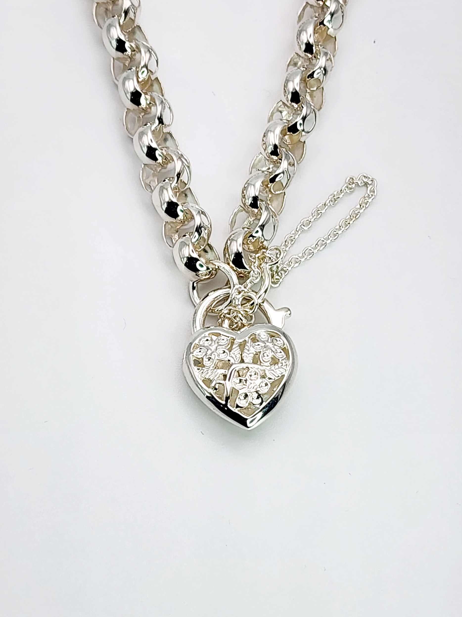 Sterling Silver 19cm Belcher Bracelet With Filigree Heart Padlock