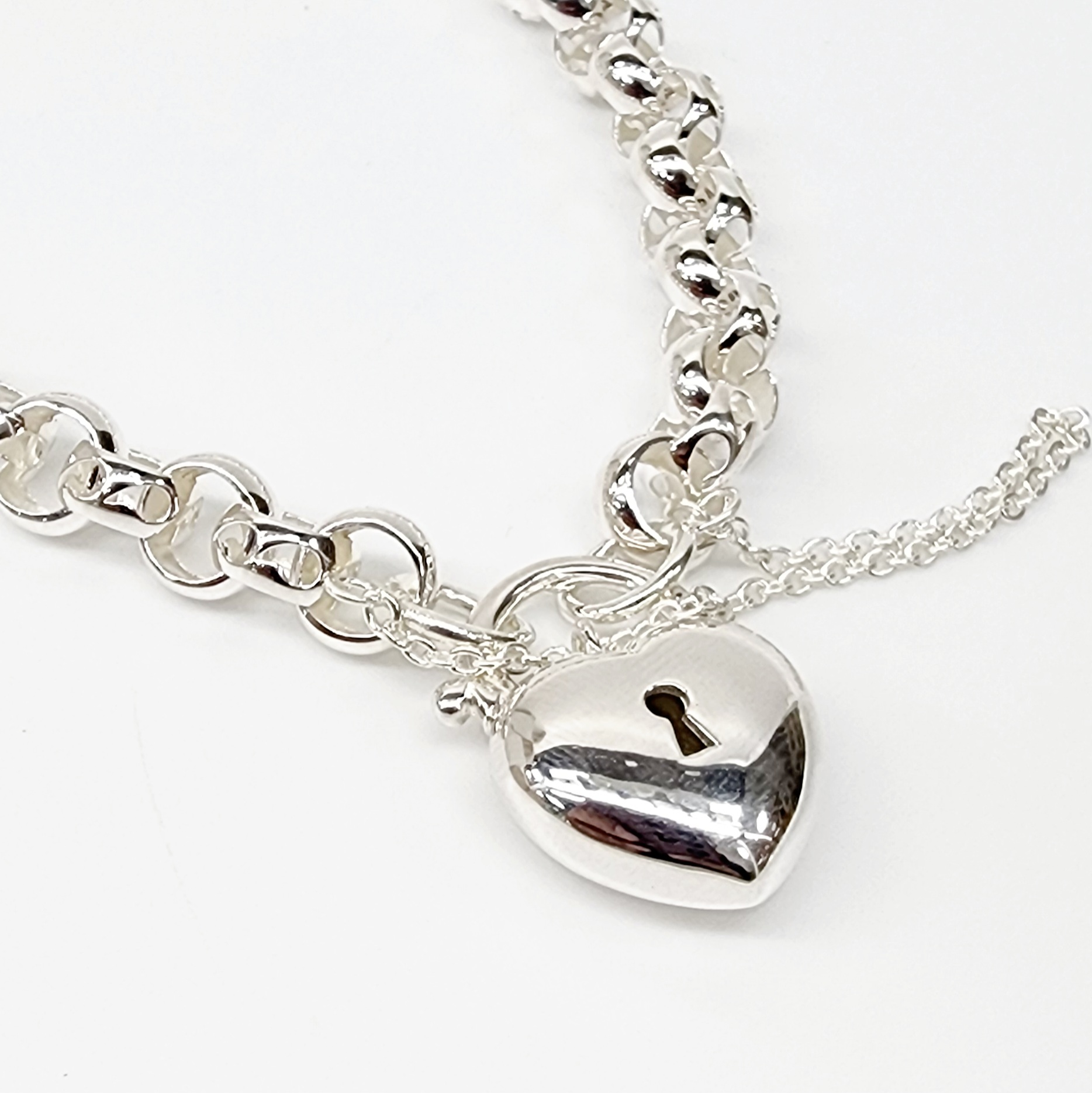 Sterling Silver 21cm Filigree Belcher Bracelet With Puff Heart Padlock – S/S-CYBA56-21CM