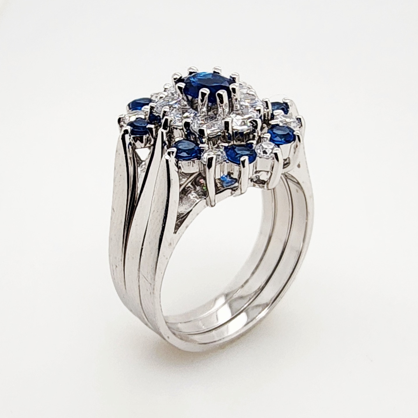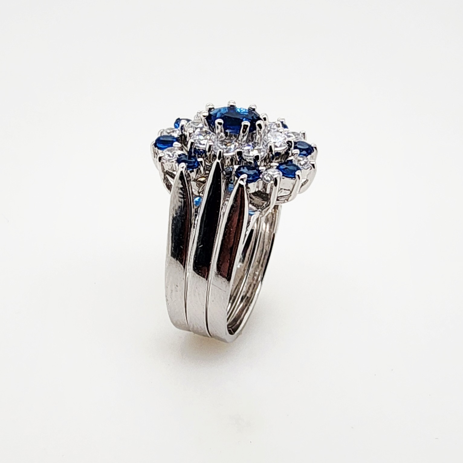 Sterling Silver 3 Piece Cluster Ring Set with Cubic Zirconia & Created Blue Sapphire Setting – R005CZBLU