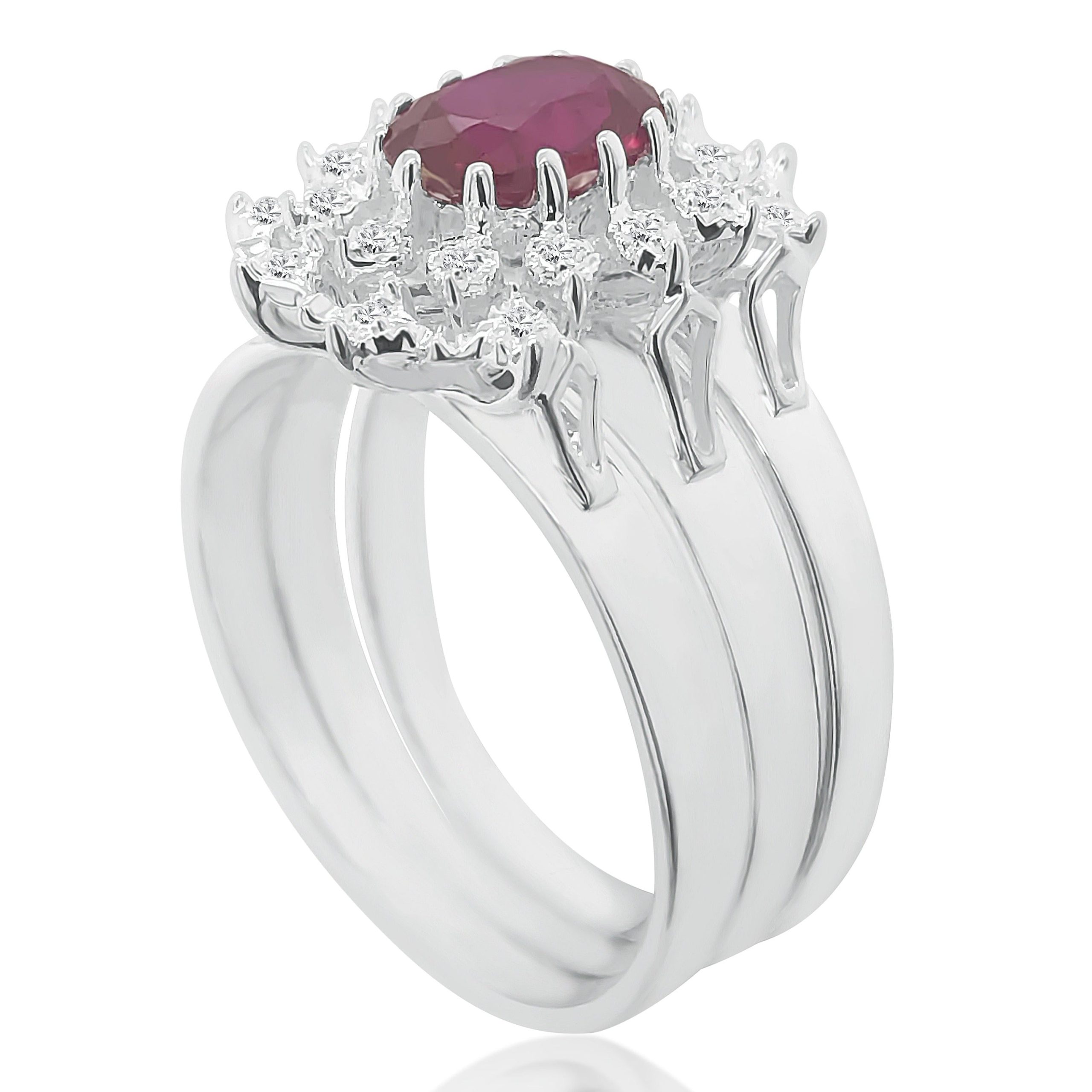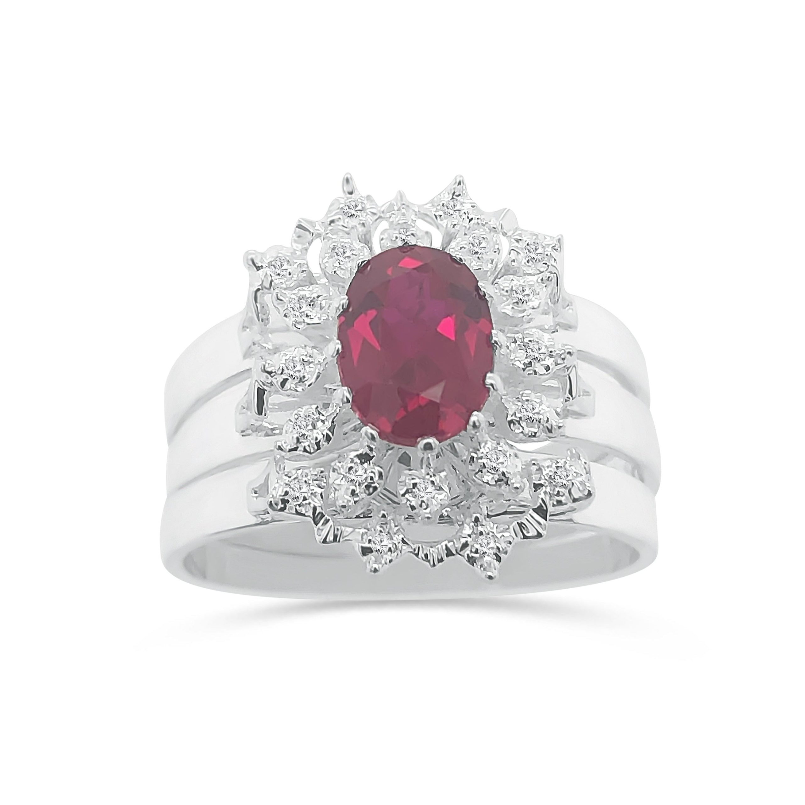 Sterling Silver 3 Piece Cluster Ring Set with Cubic Zirconia & Created Ruby Setting – S/S-D2053-RUBY