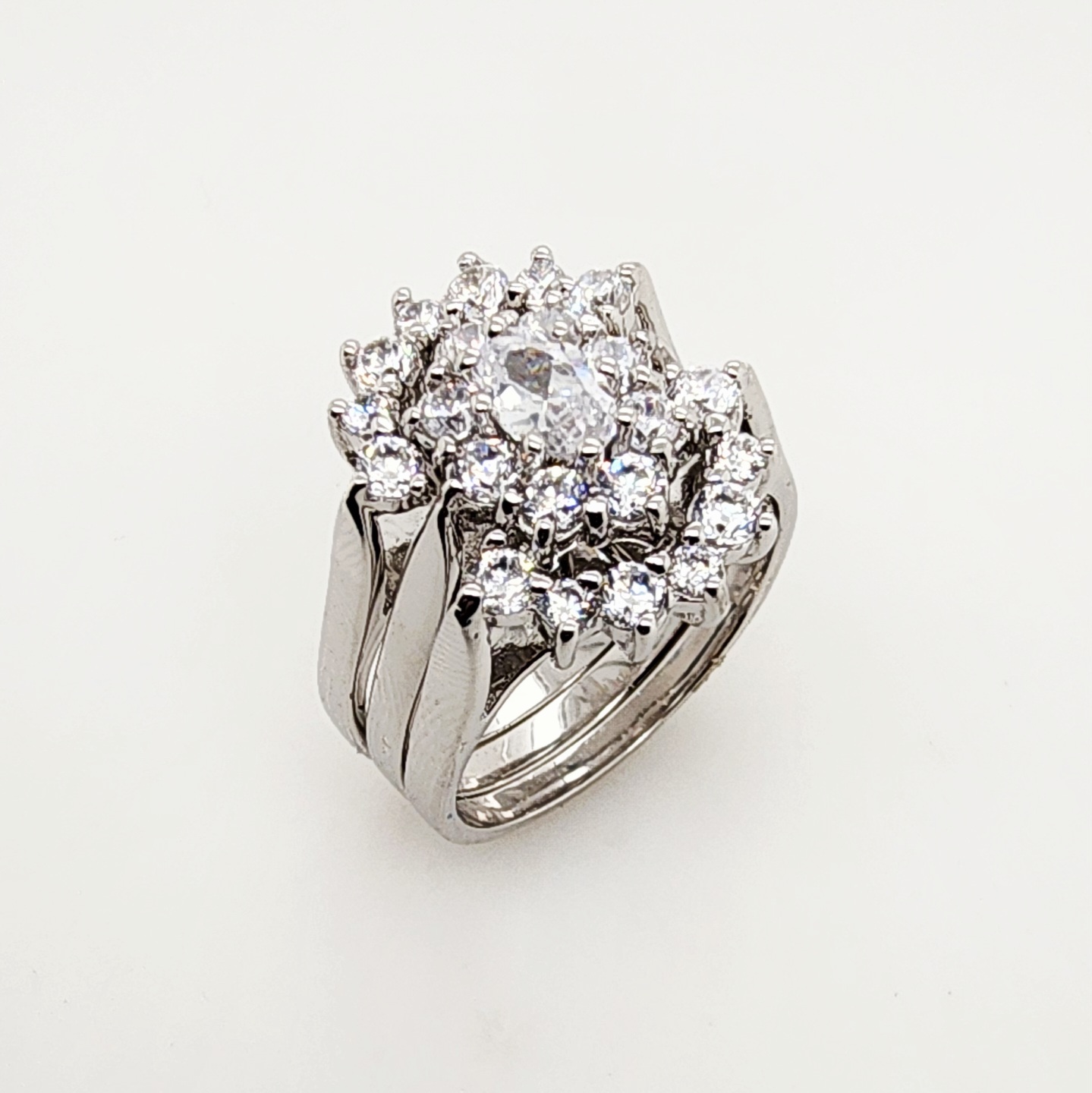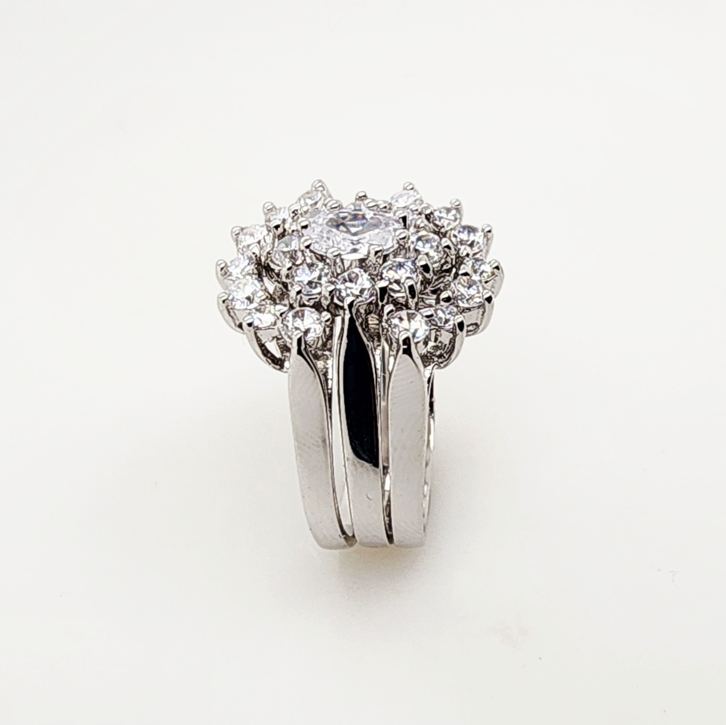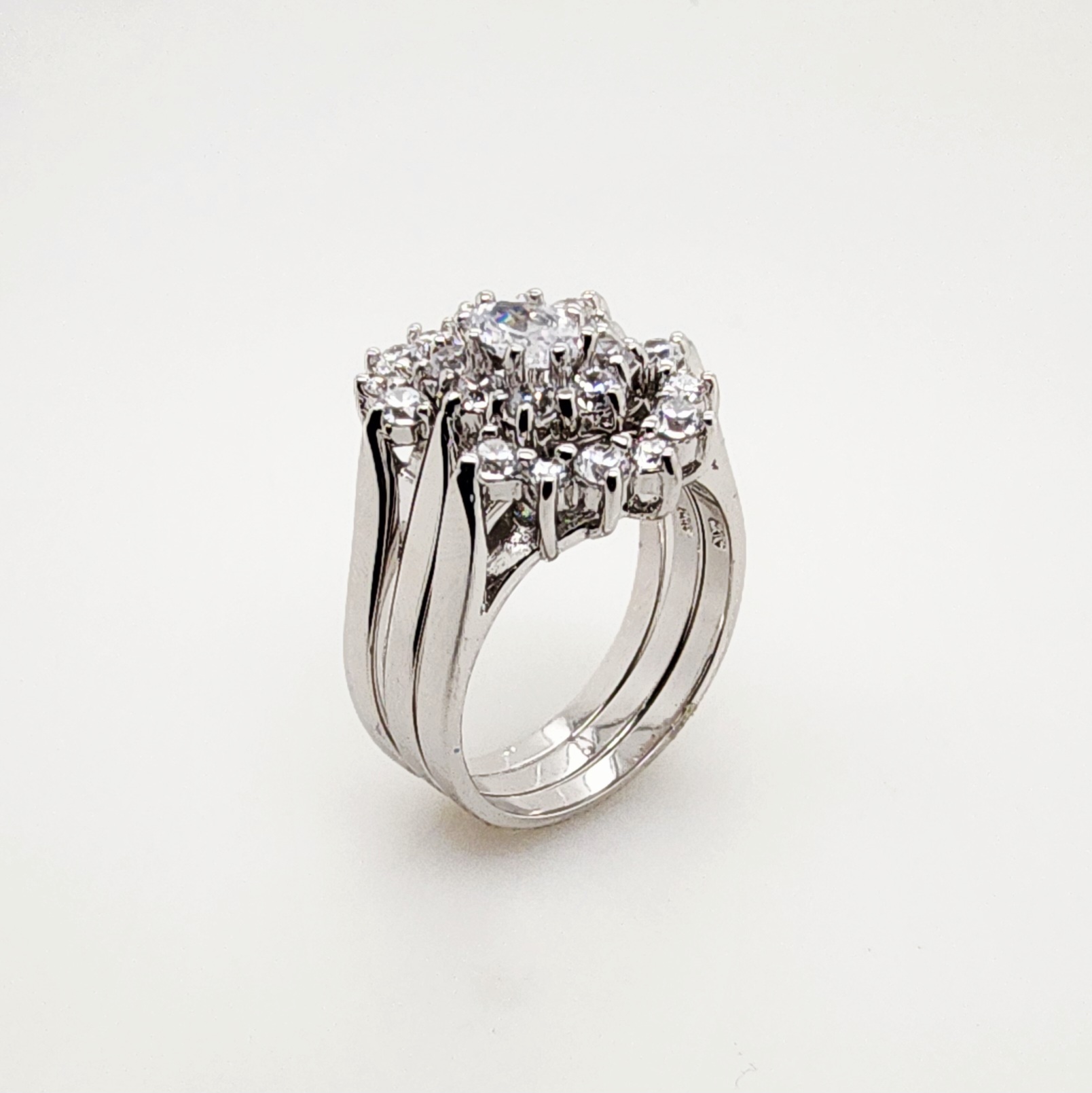Sterling Silver 3 Piece Cluster Ring Set with White Cubic Zirconia Setting – R005CZWHITE