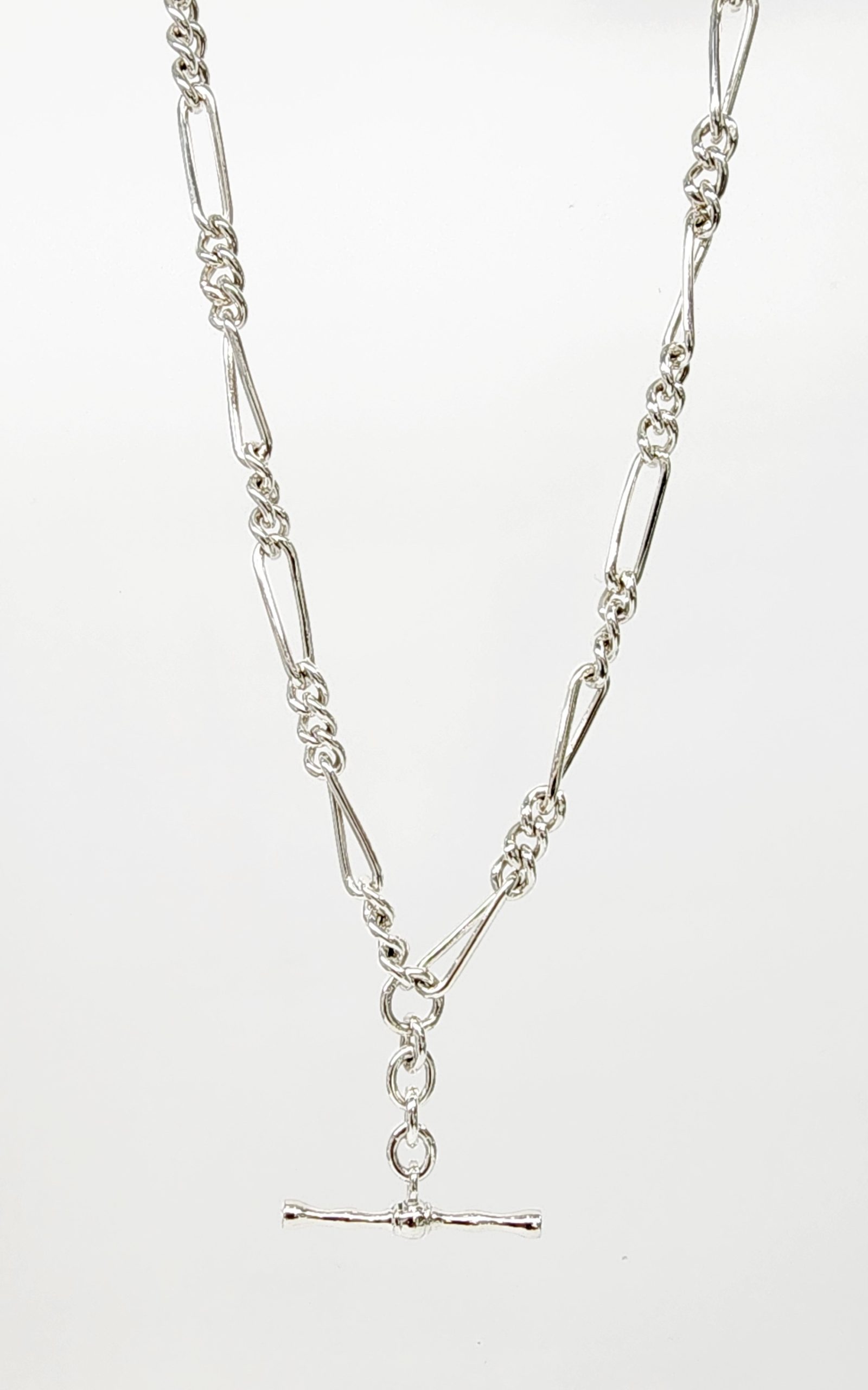 Sterling Silver 55cm Figaro Chain Necklace with T-Bar Pendant – SNK3