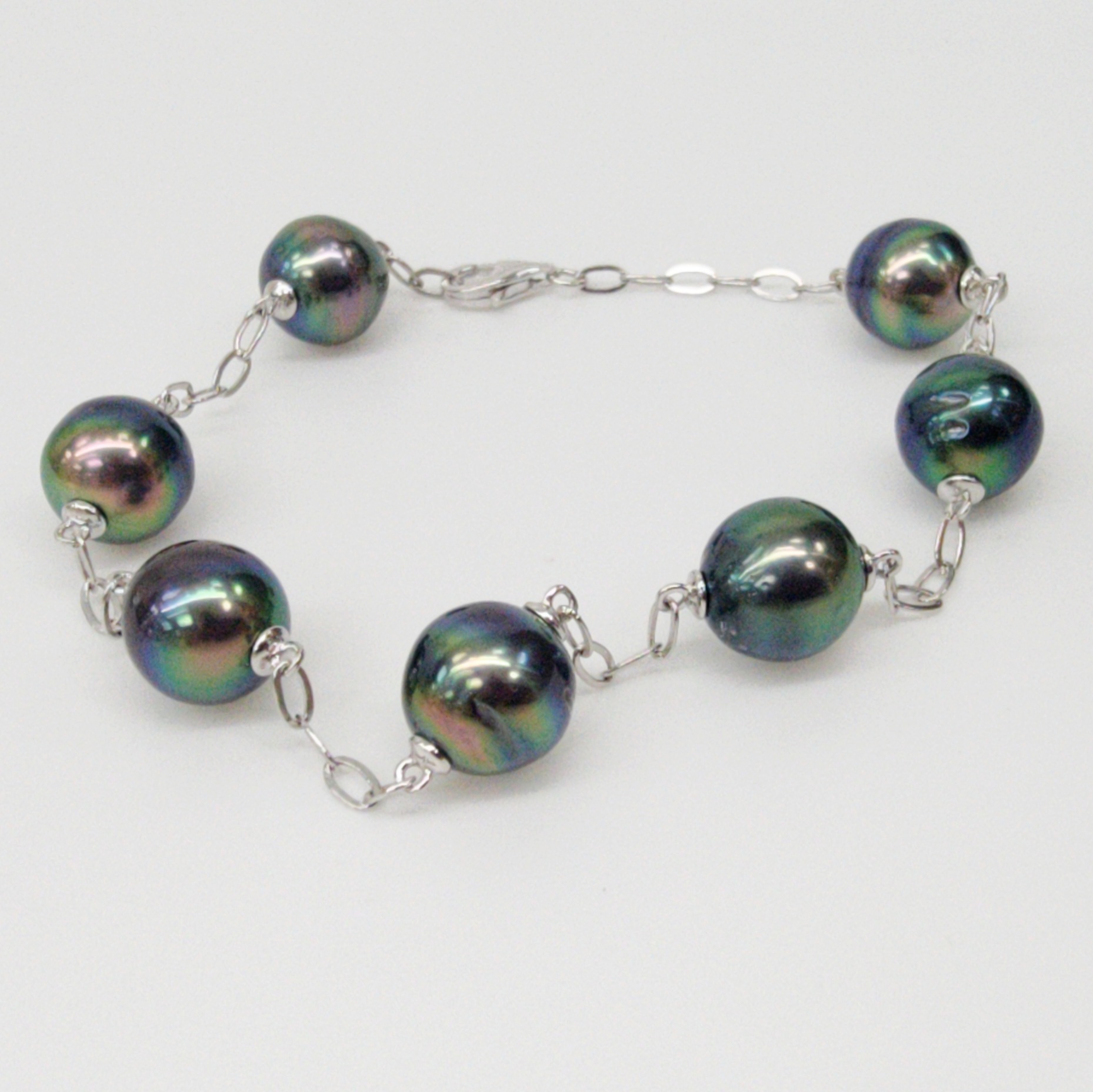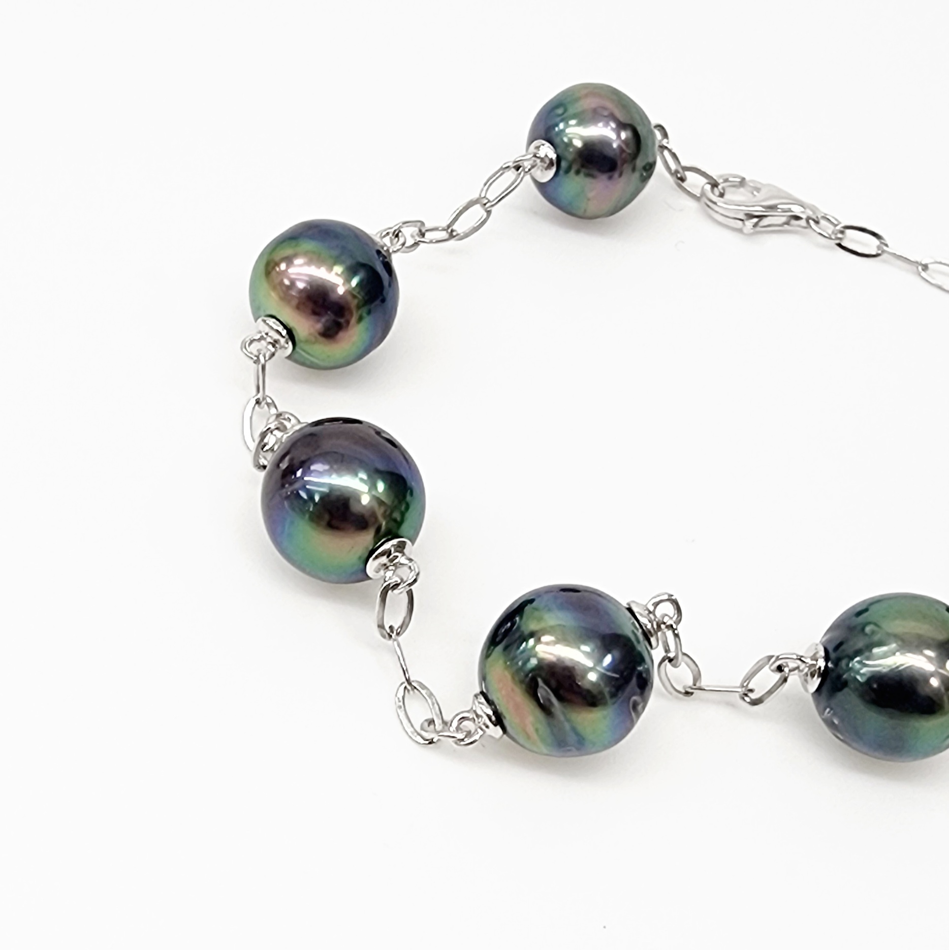 Sterling Silver 9.5mm Round Tahitian Black Pearl Bracelet 18cm Long – GB0005-6P-21cm