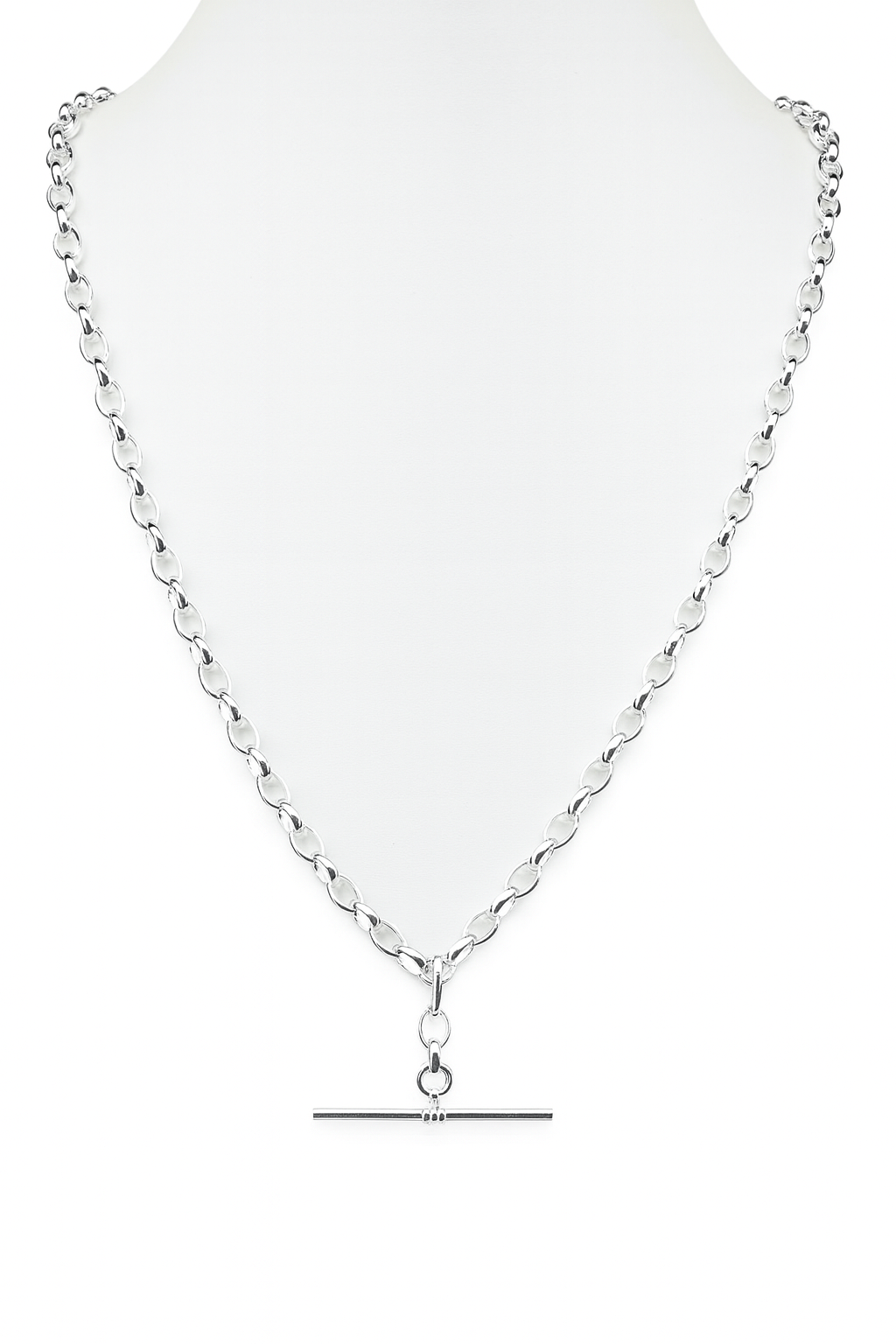 Sterling Silver BO3 Oval Belcher Chain With 35mm Sterling Silver Running T-Bar