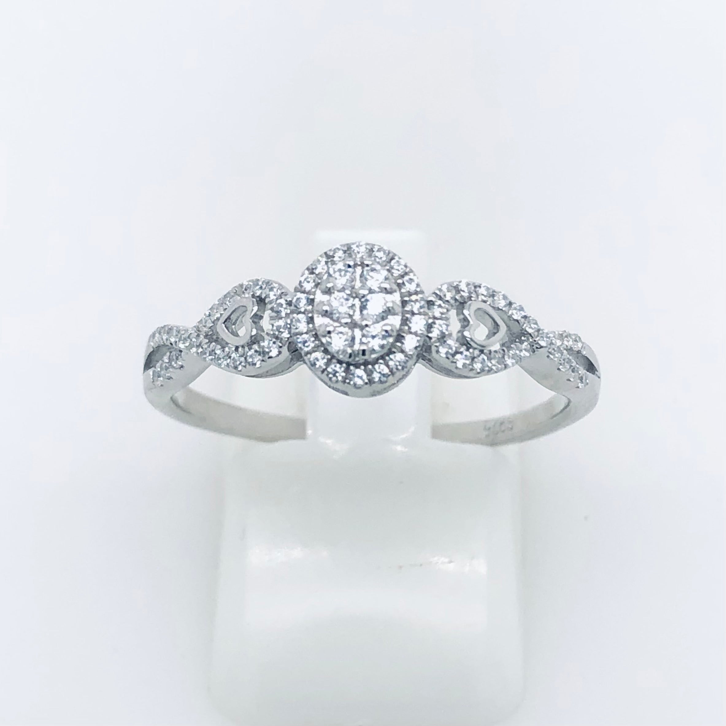Sterling Silver Cluster Ring With Cubic Ziconia Setting and Crossover Band