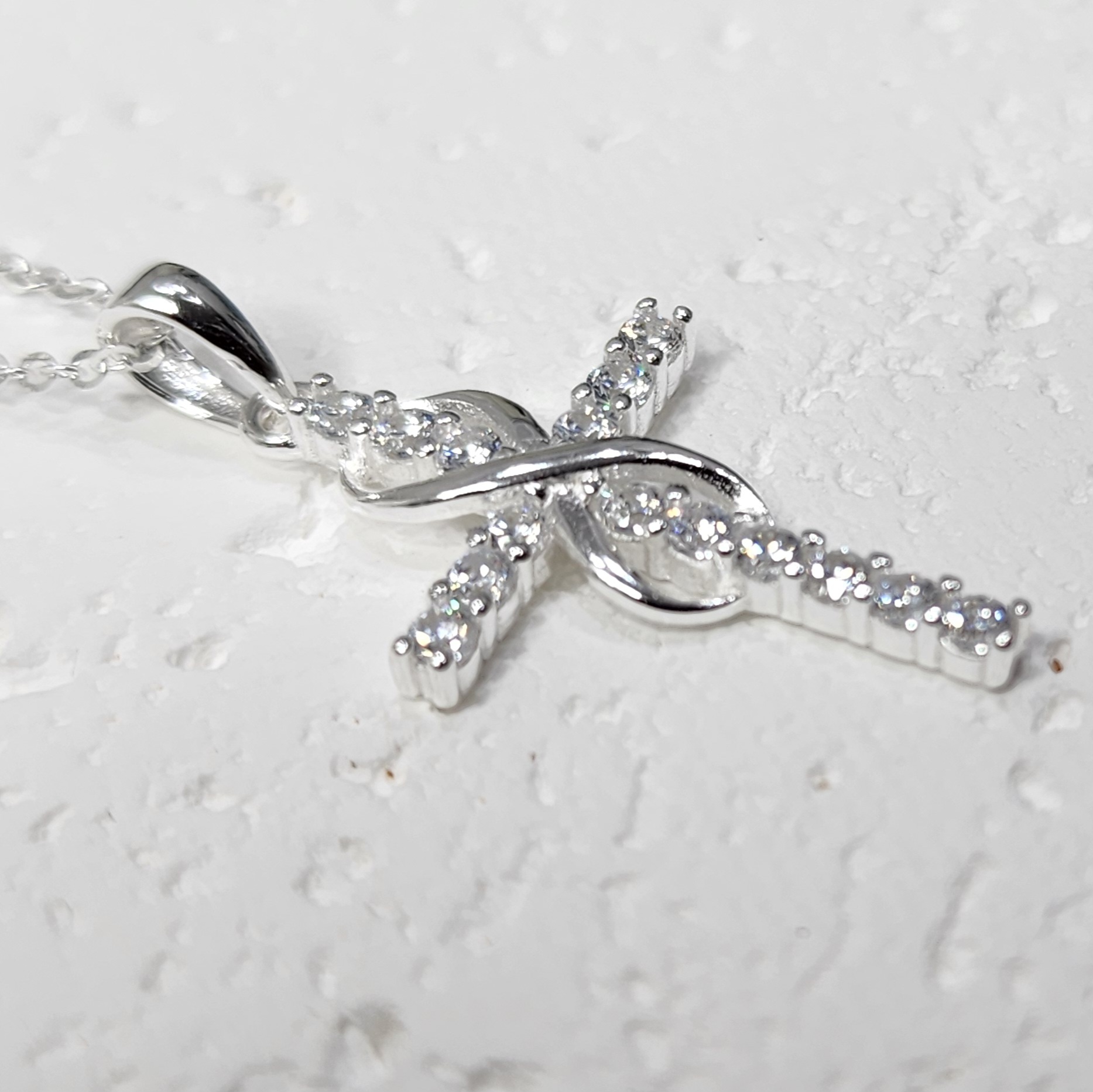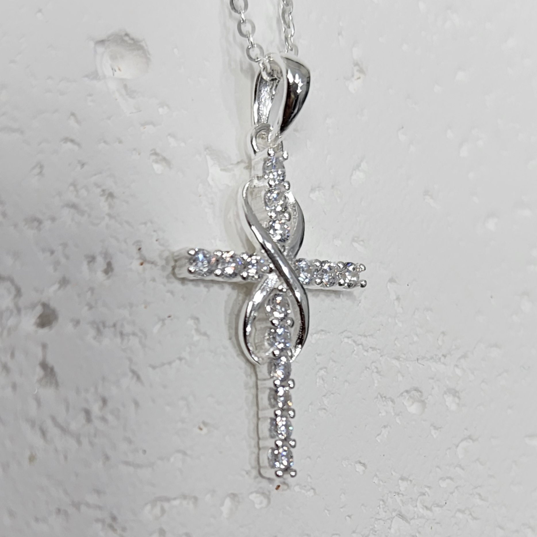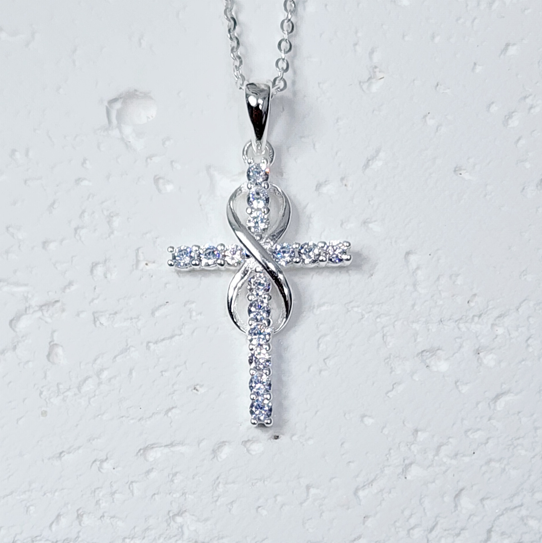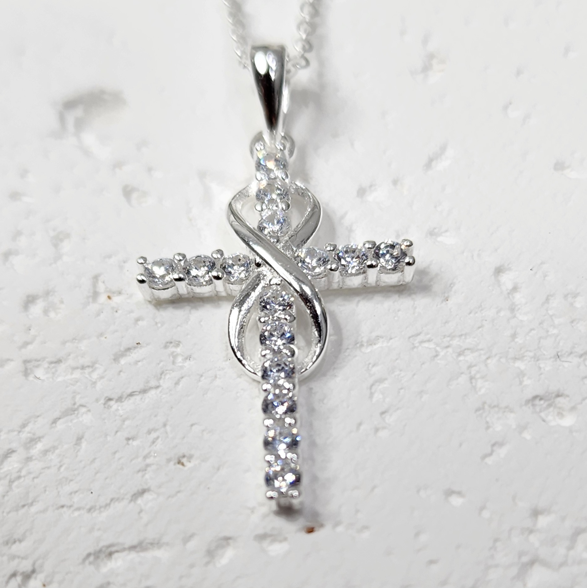 Sterling Silver Cubic Zirconia Set Cross Pendant with Infinity and Sterling Silver Chain