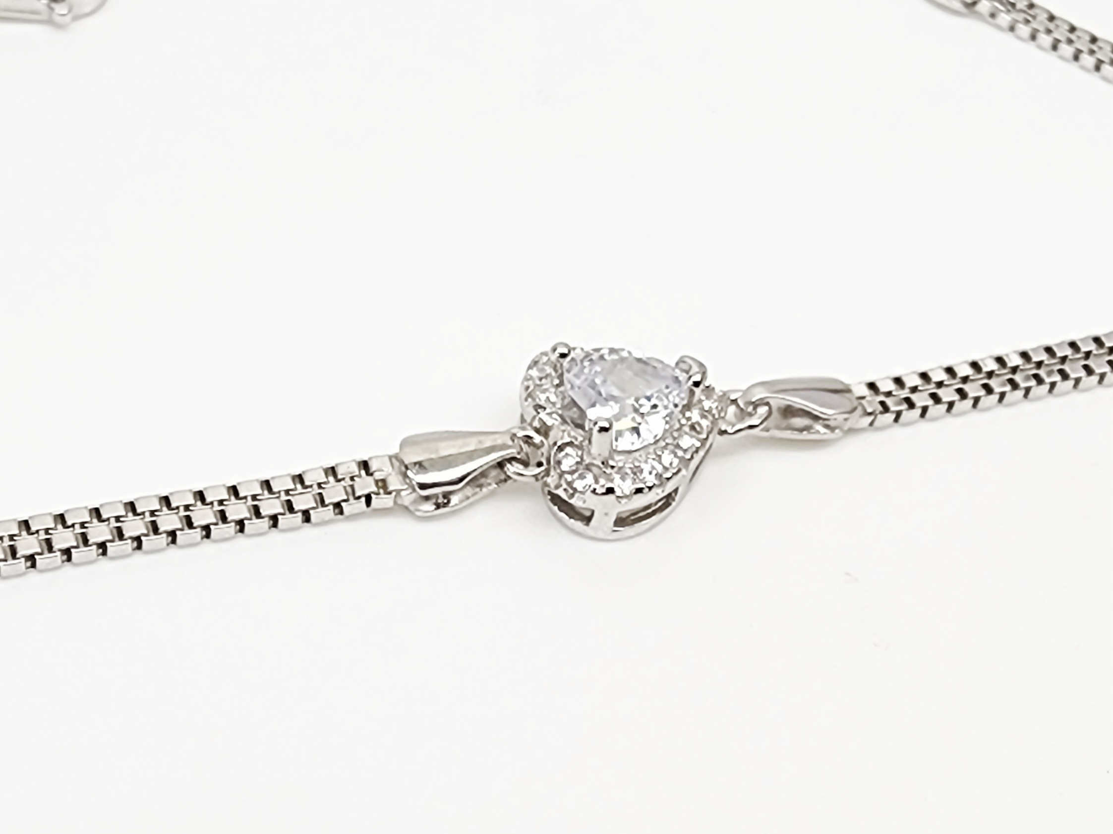 Sterling Silver Heart Shape Cubic Zirconia Set Double Box Chain Link Bracelet 16cm + 3cm – SSCZB04