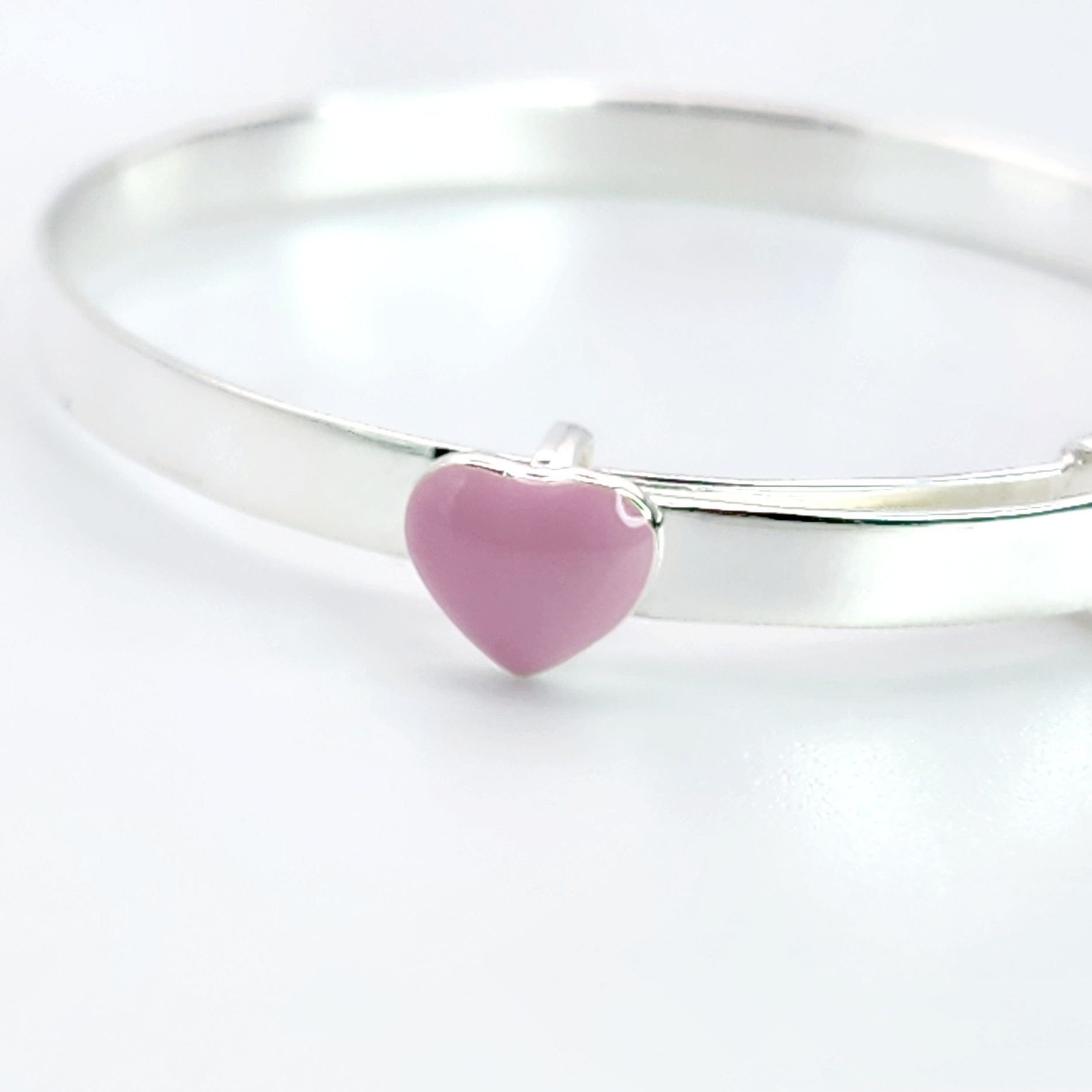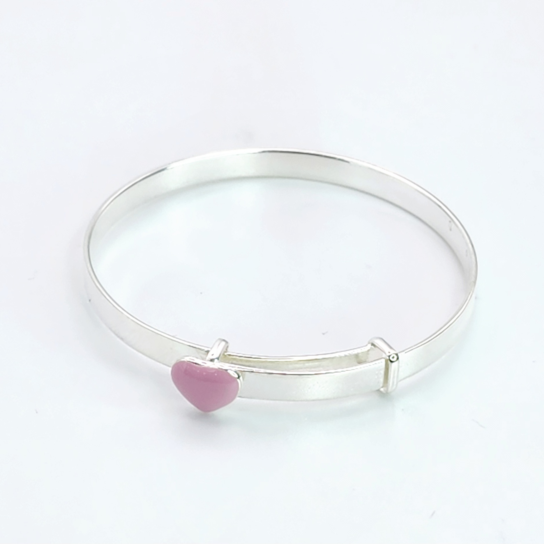 Sterling Silver baby expanding bangle with Pink Heart. The bangle is 47mm without expanding.