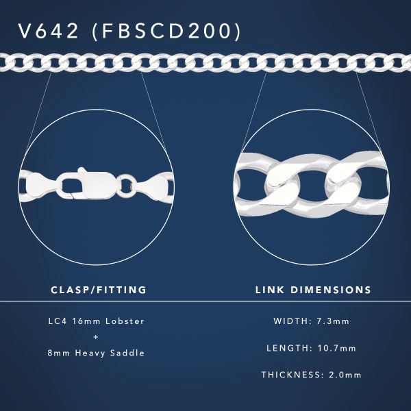 Sterling Silver FBSCD200 Flat Bevelled Diamond-Cut Curb Chain with Lobster Catch