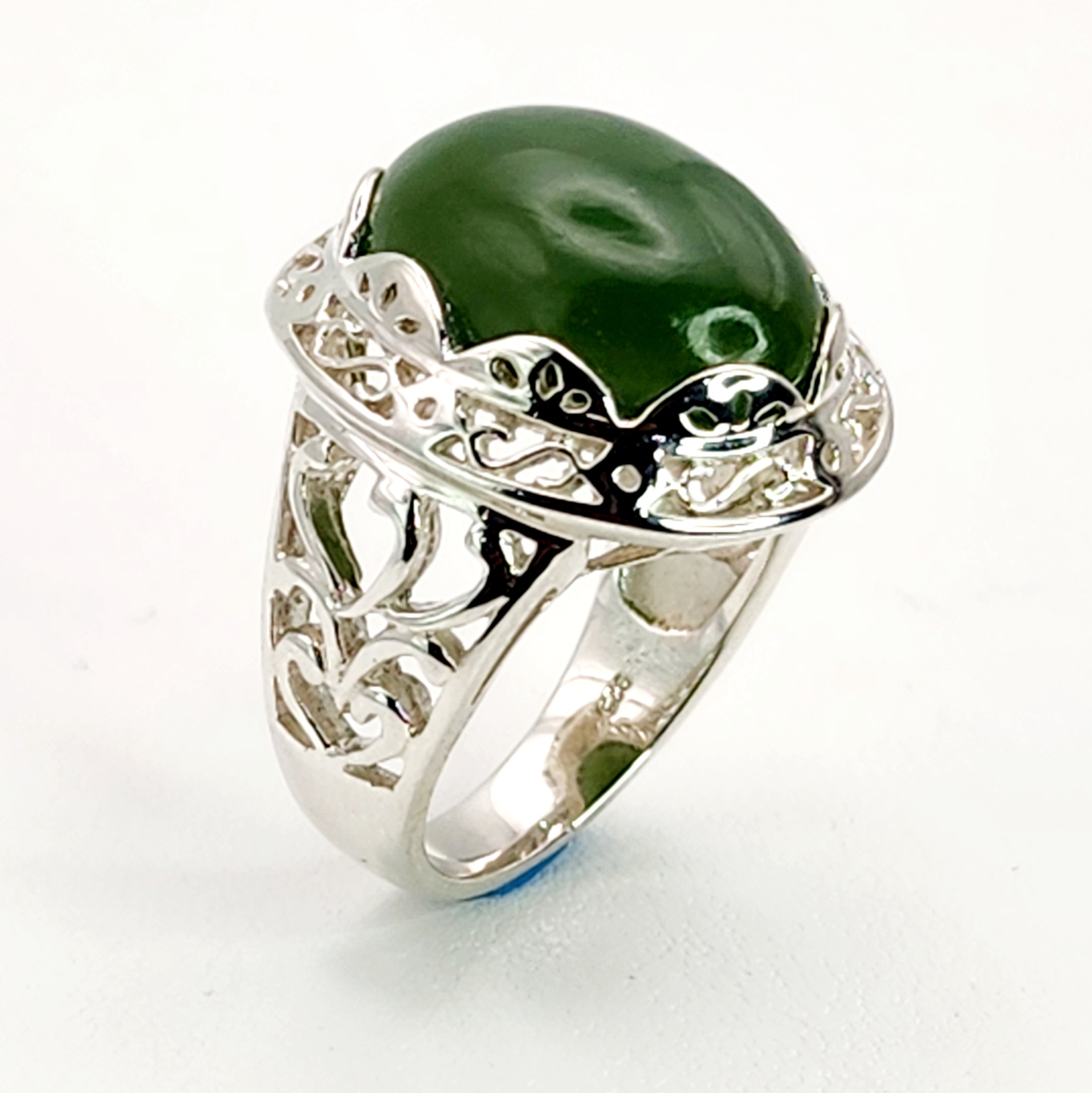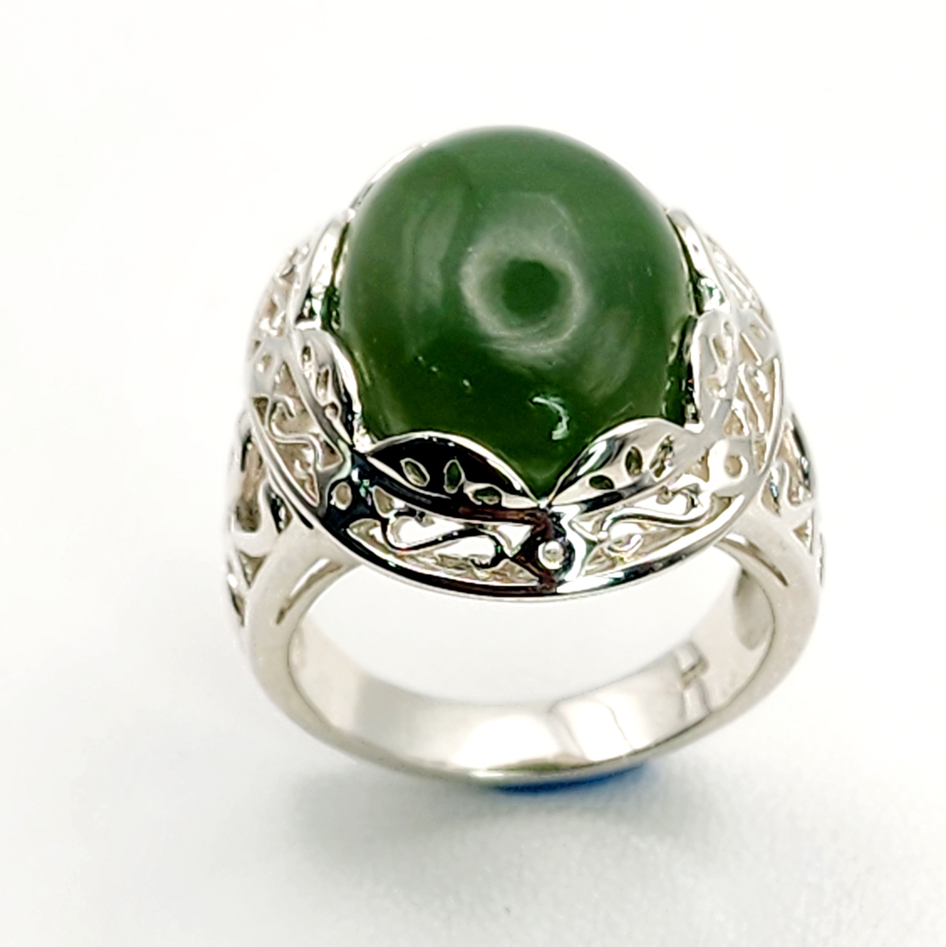 Sterling Silver Filigree Design Ring with Oval Greenstone