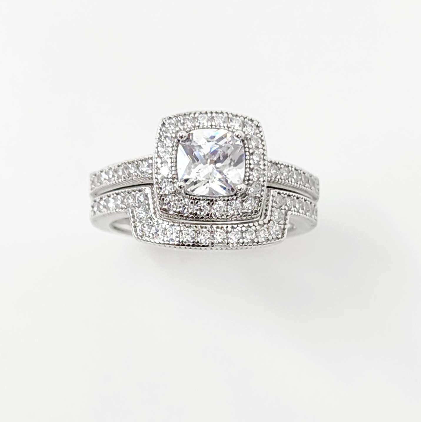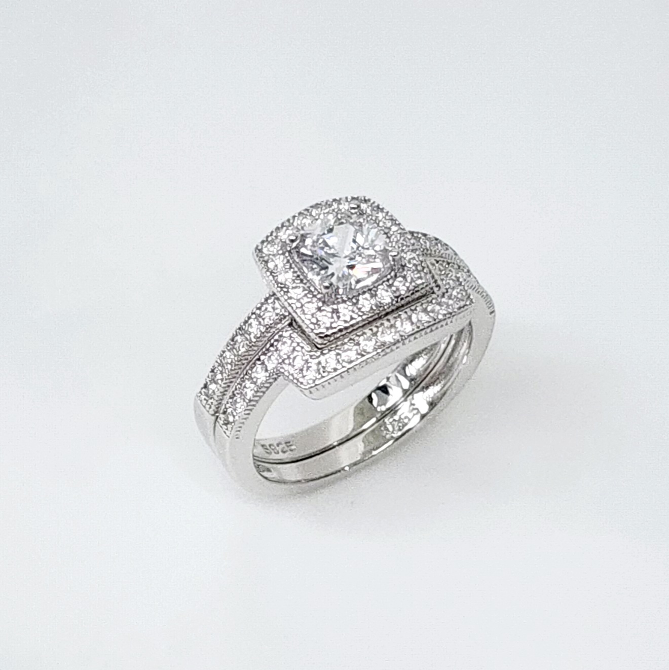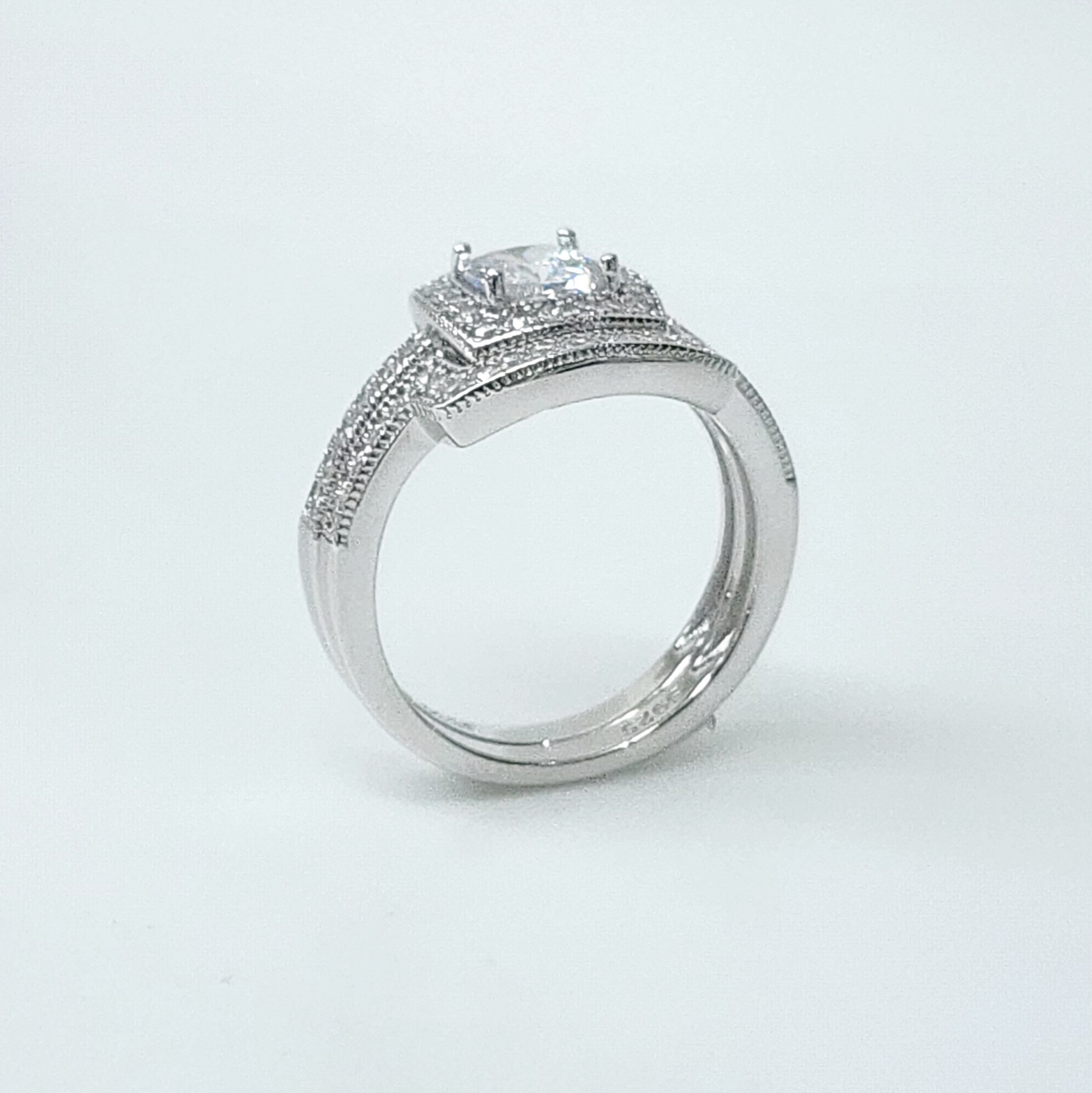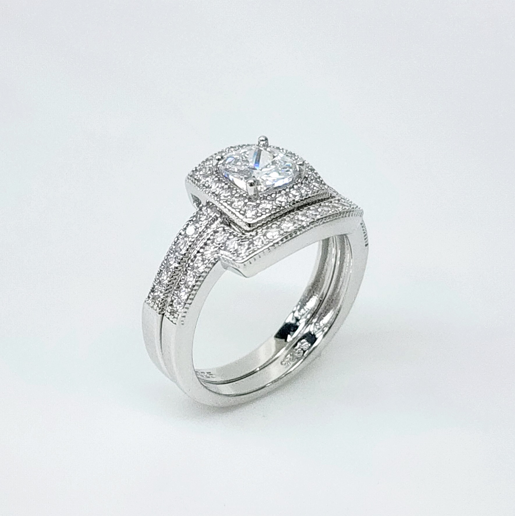 STUNNING Cubic Zirconia Bridal Ring Set – Dress your finger with this luxurious Sterling Silver bridal ring set with a sparkling engagement ring and elegant matching wedding band.