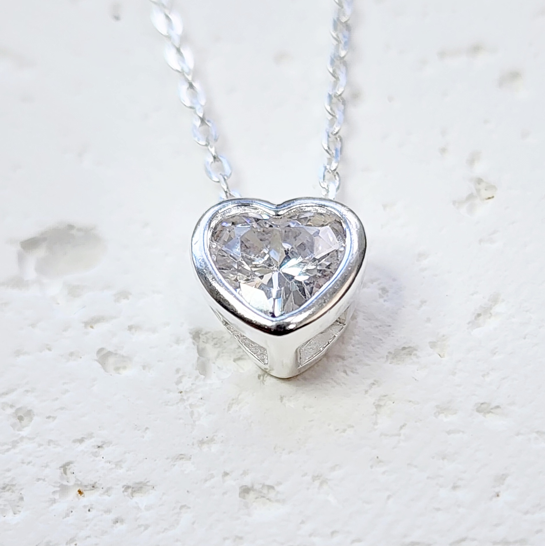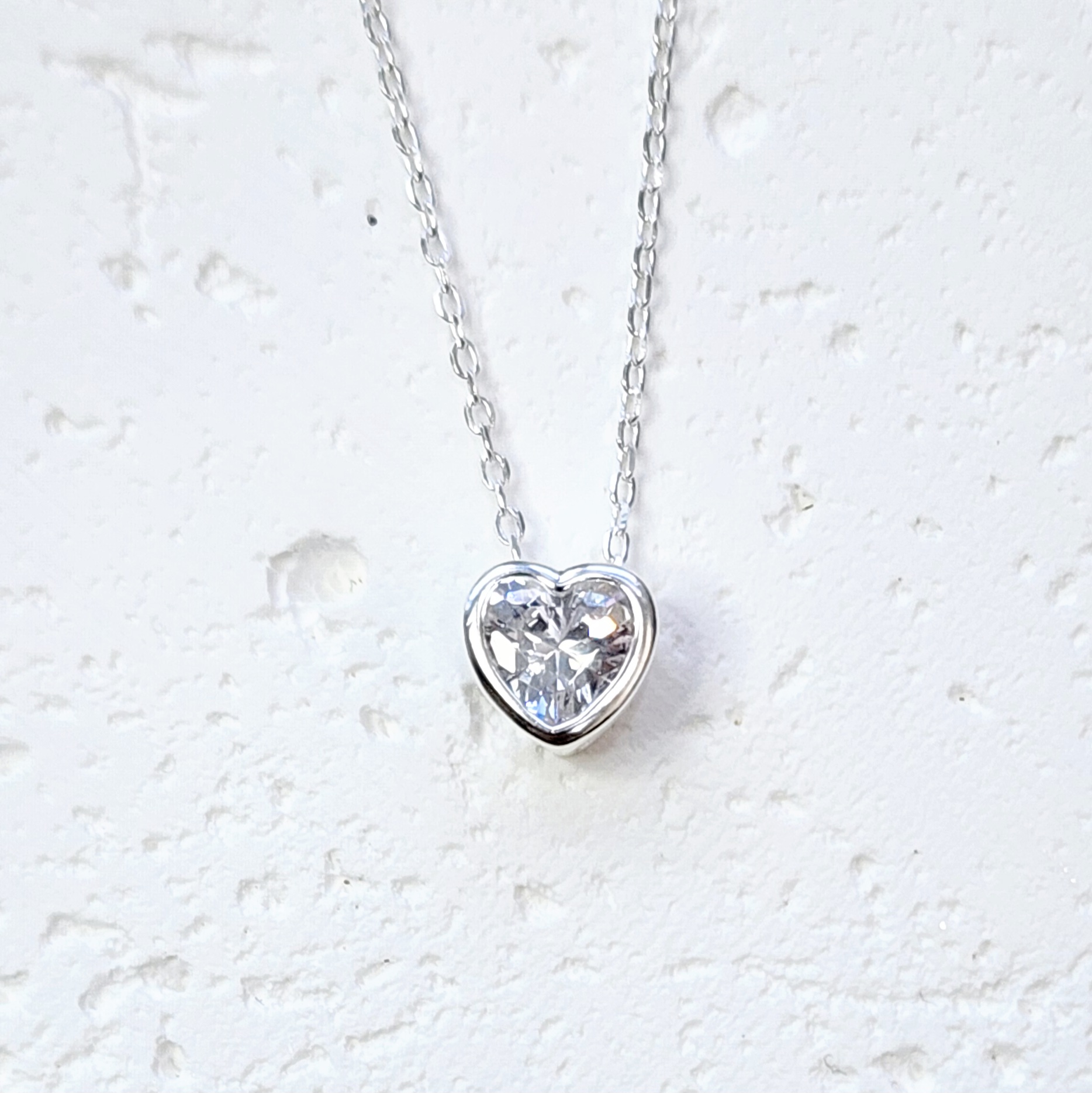Sterling Silver Heart Shape CZ Pendant with Sterling Silver Chain