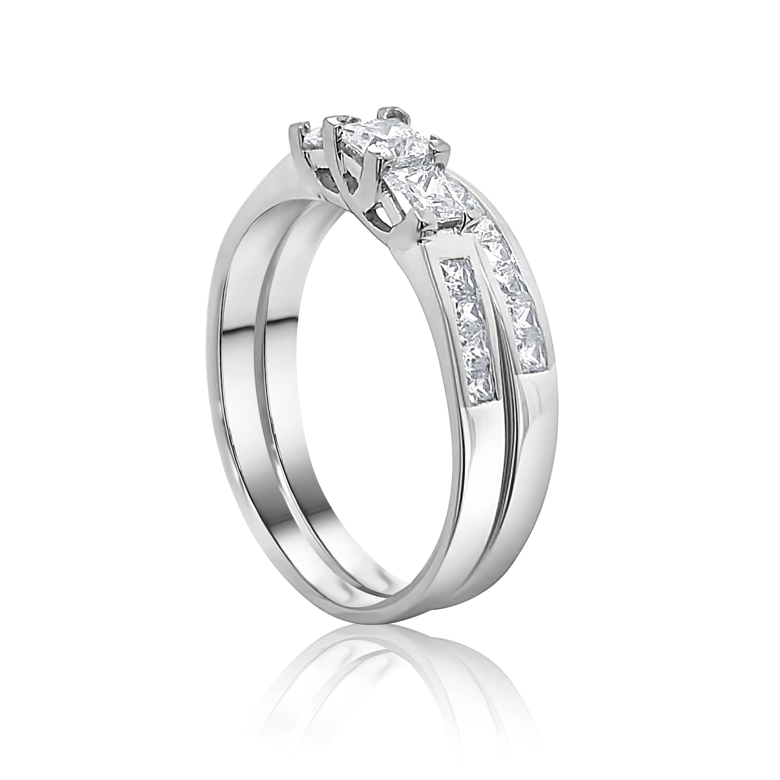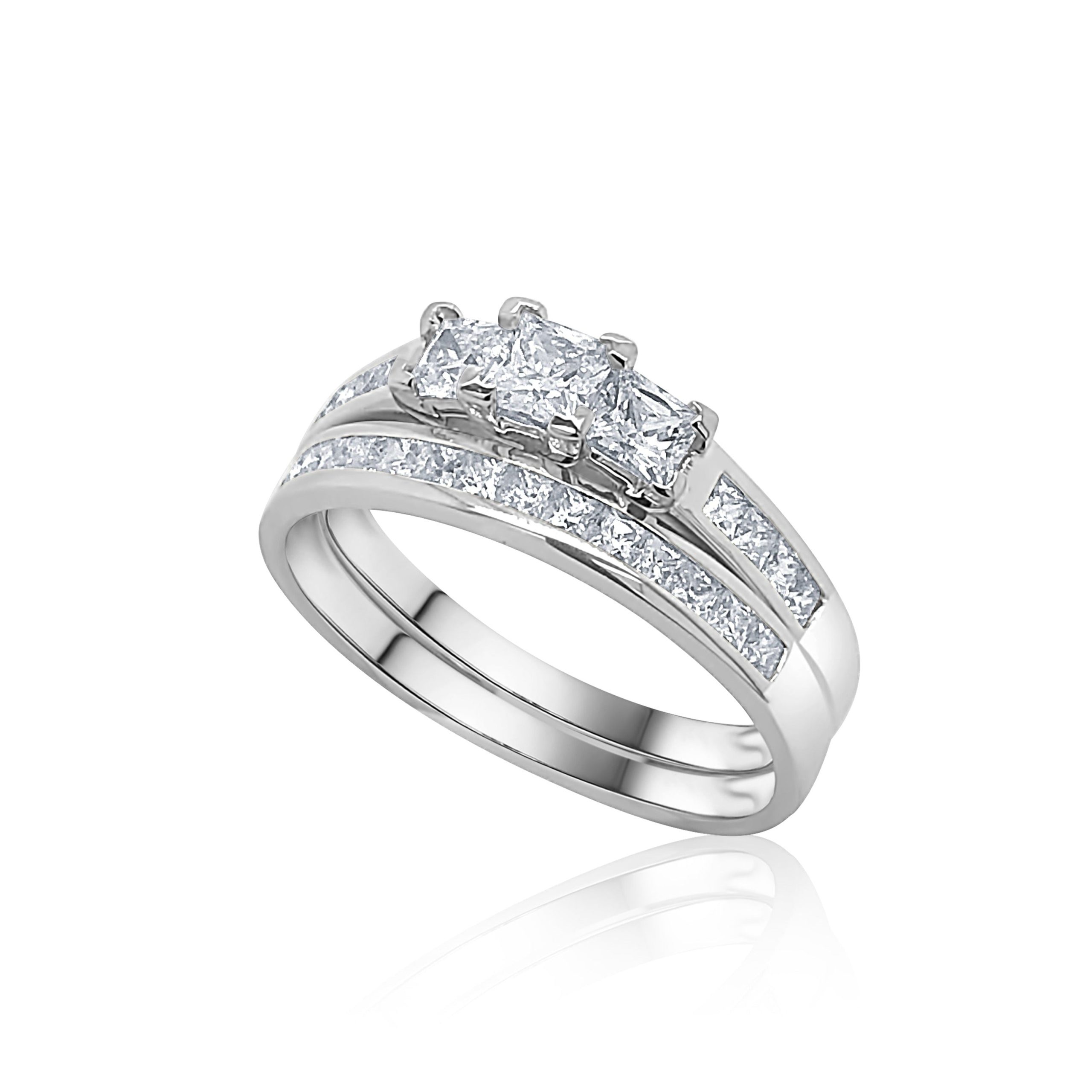 Sterling Silver Ladies 2 Piece Princess Cut Three Stone Bridal Cubic Zirconia Wedding Set