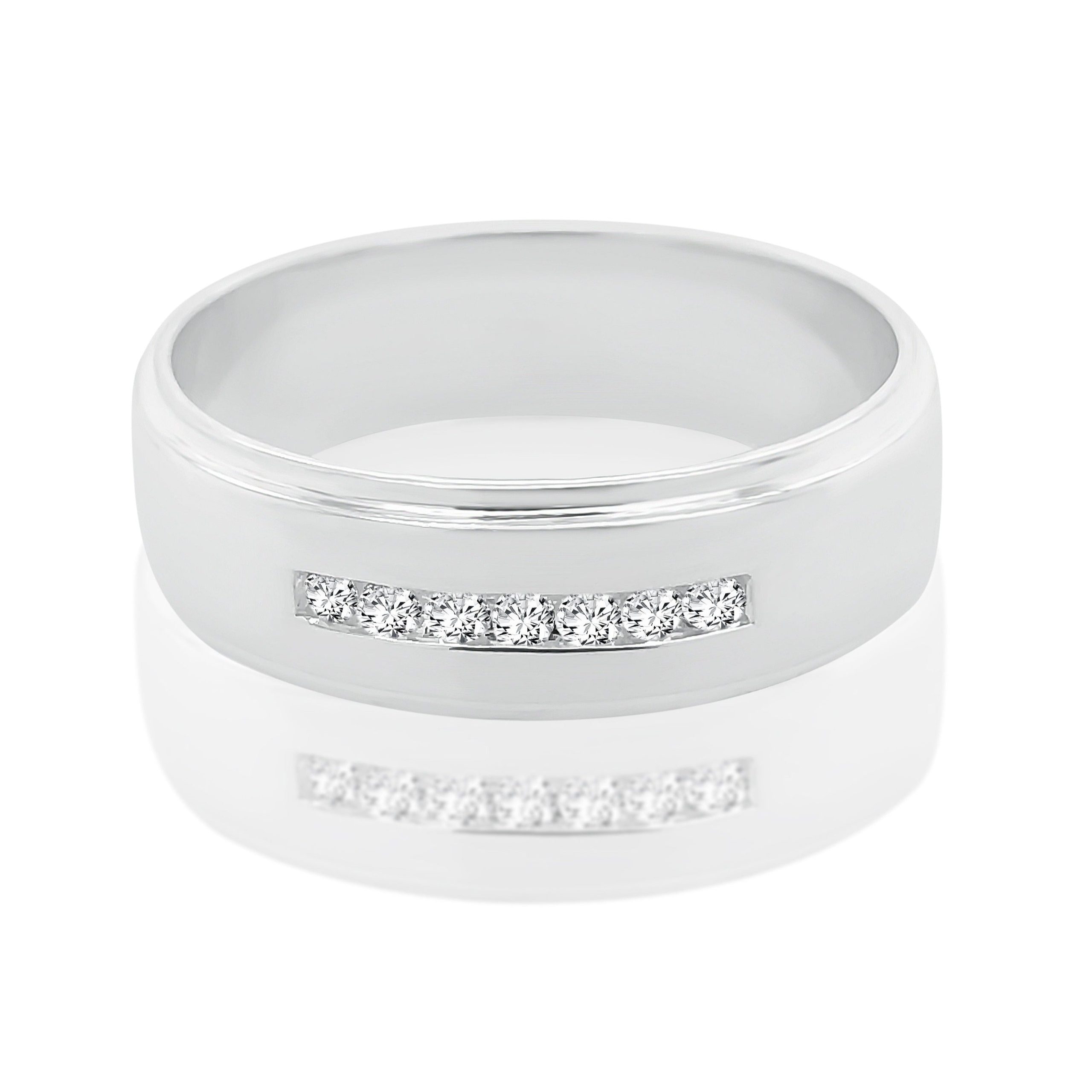 Sterling Silver Men’s Channel Setting Cubic Zirconia 7mm Wide Wedding Band Ring