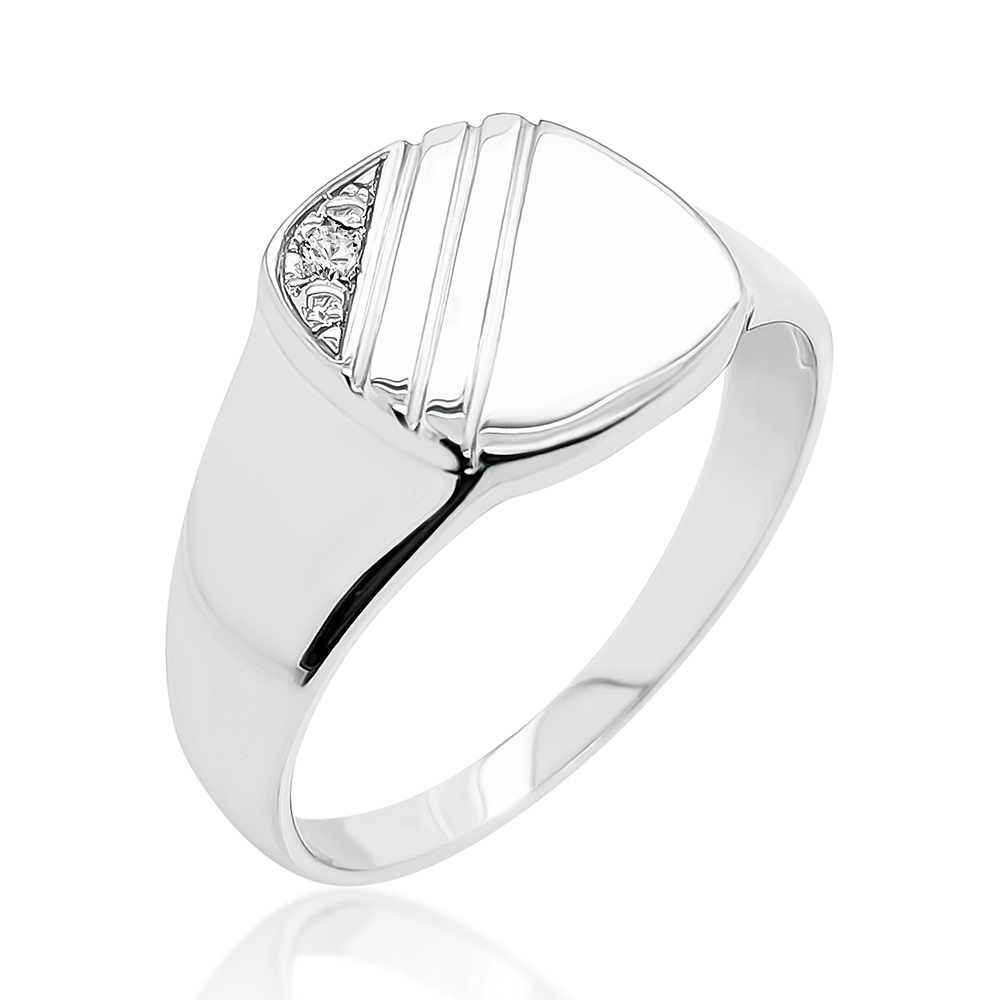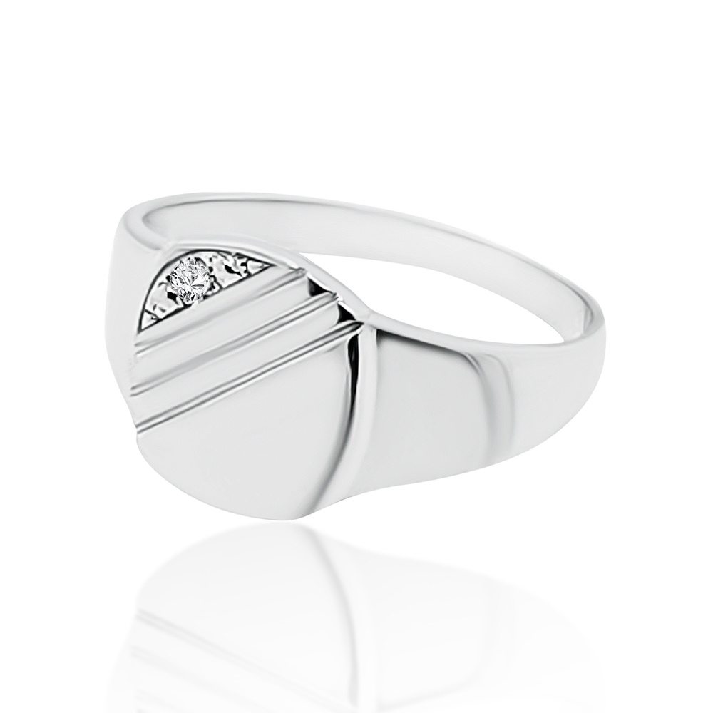 Sterling Silver Mens Wedding / Signet Ring with Cubic Zirconia Setting