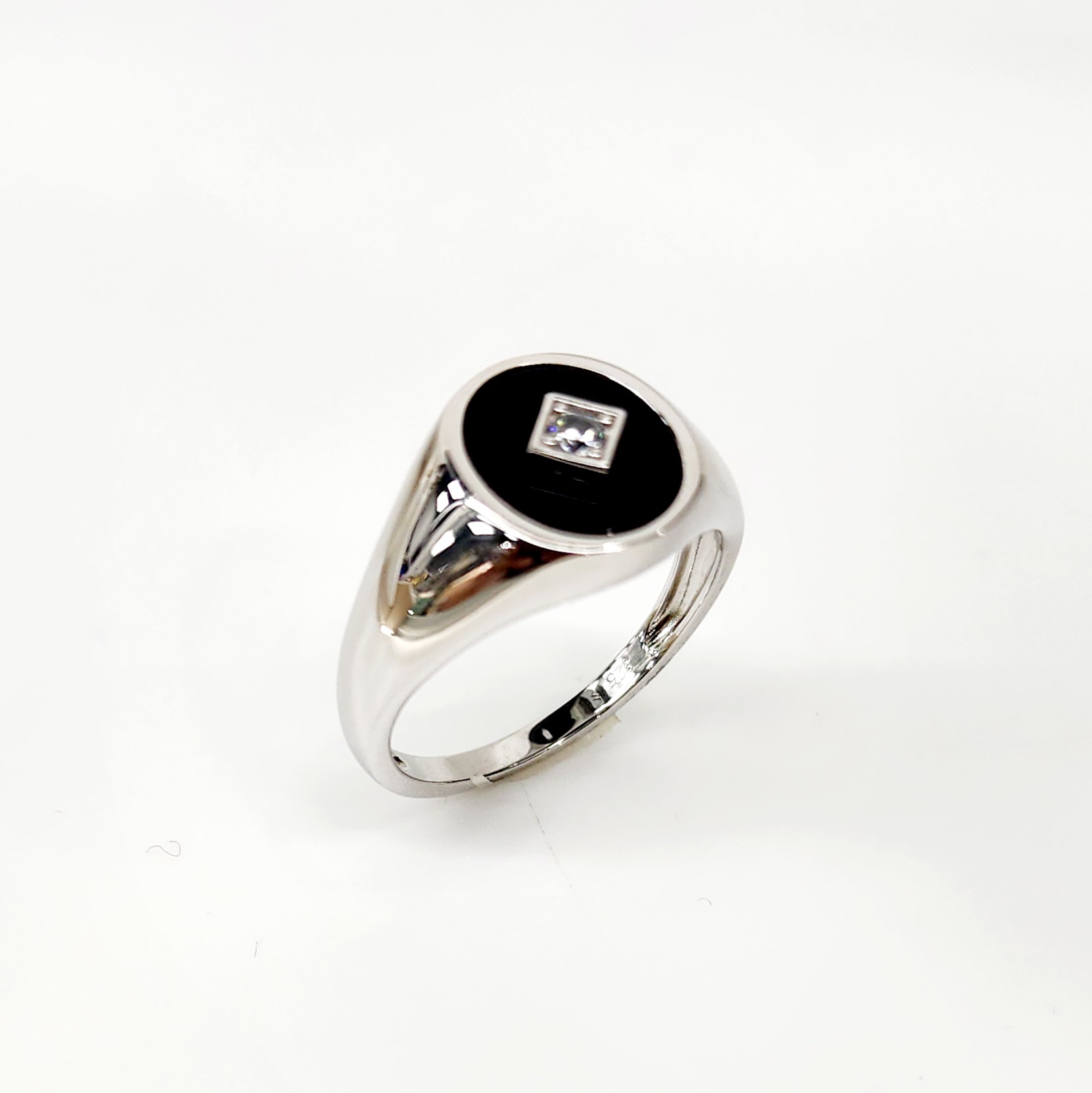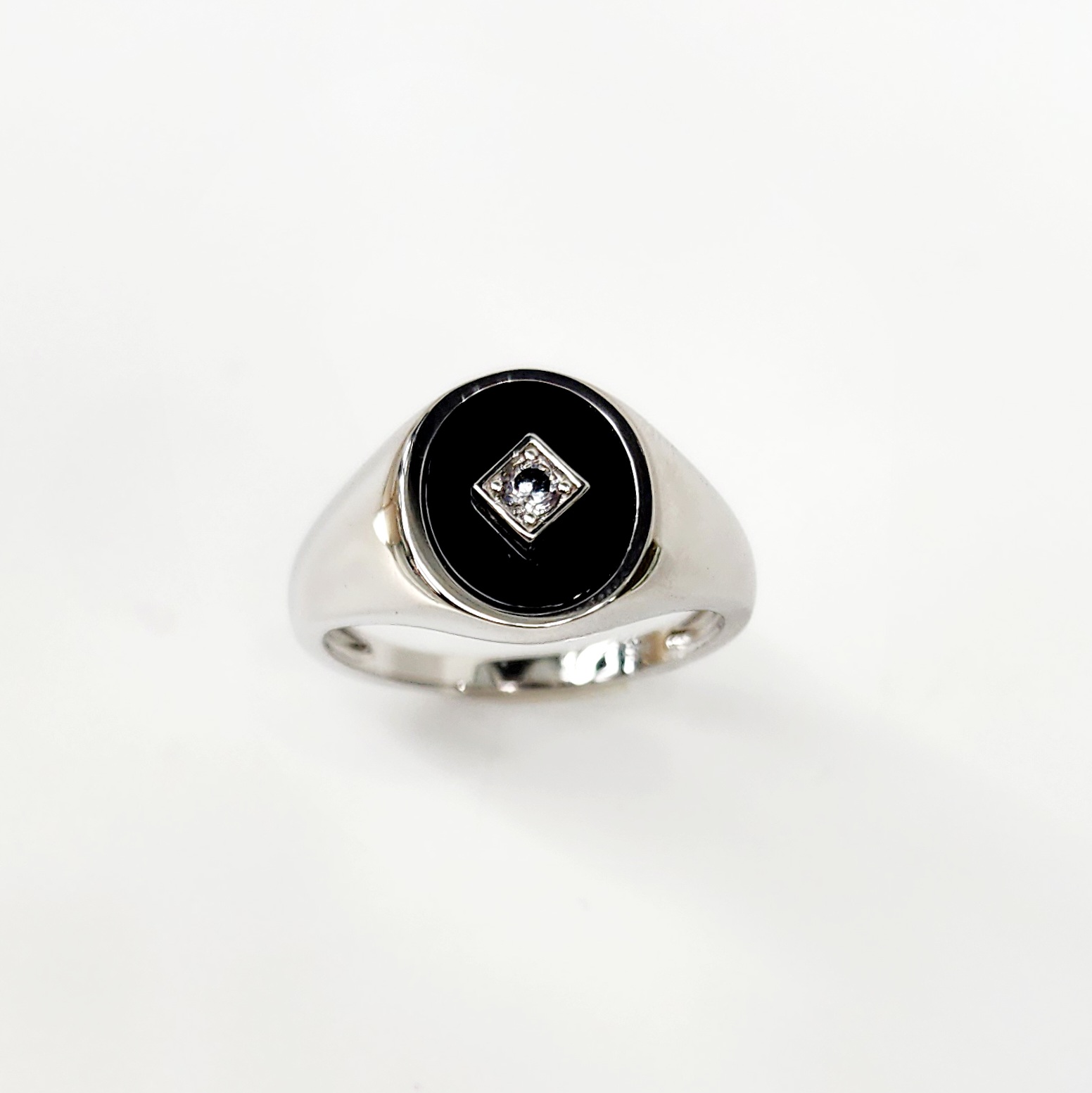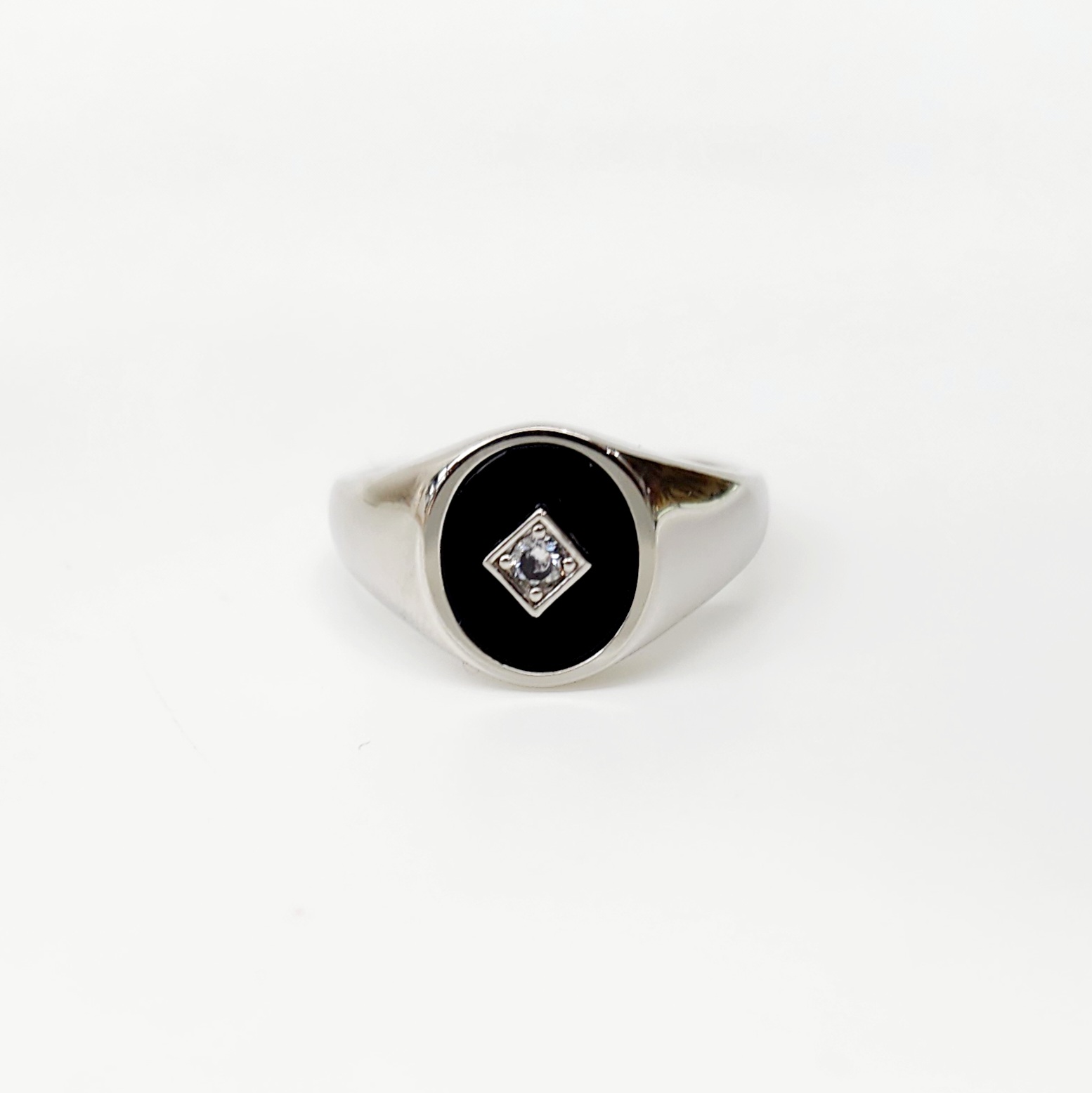 This standout ring features a oval shape natural Onyx gemstone in .925 sterling silver with CZ setting.