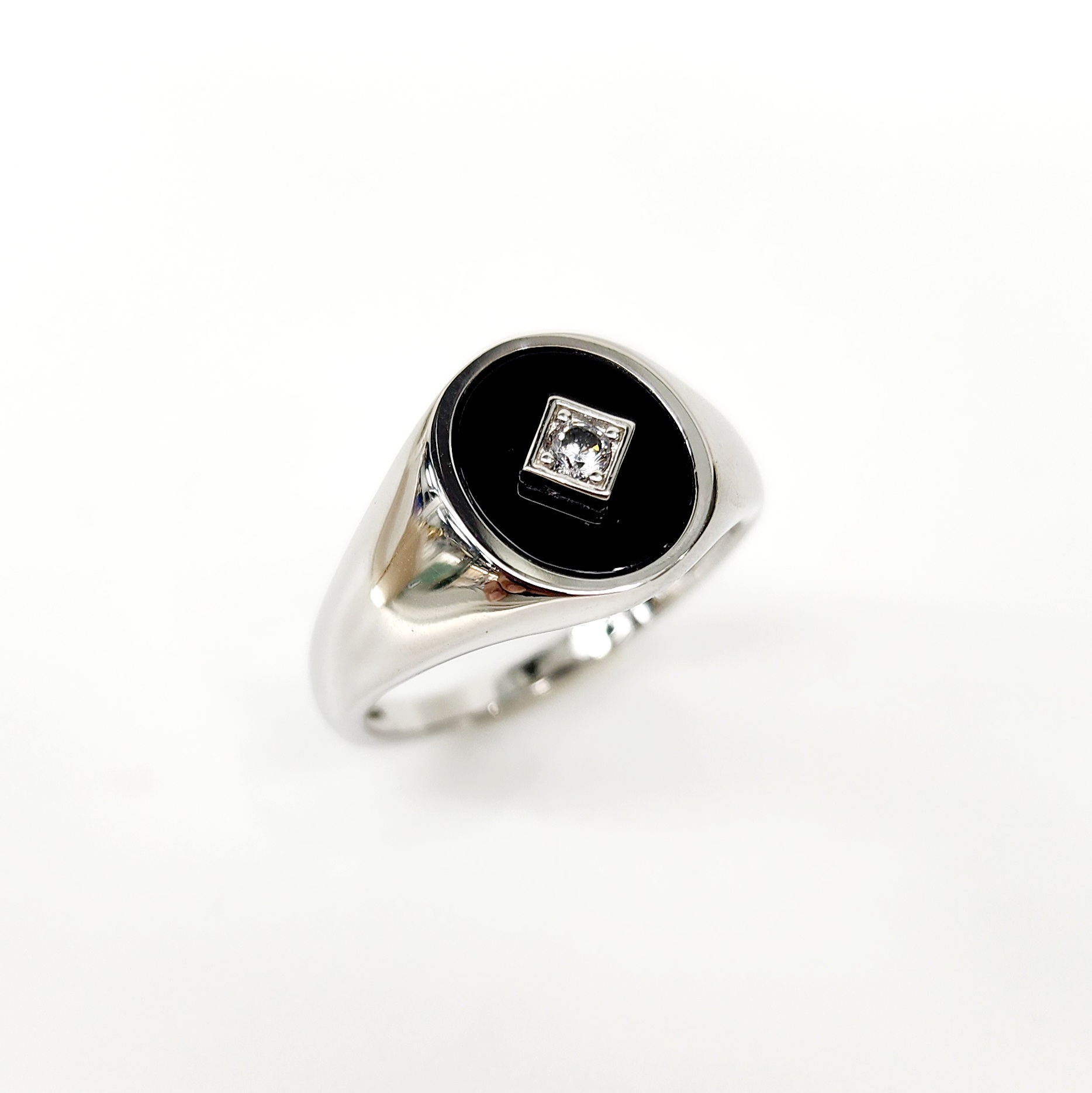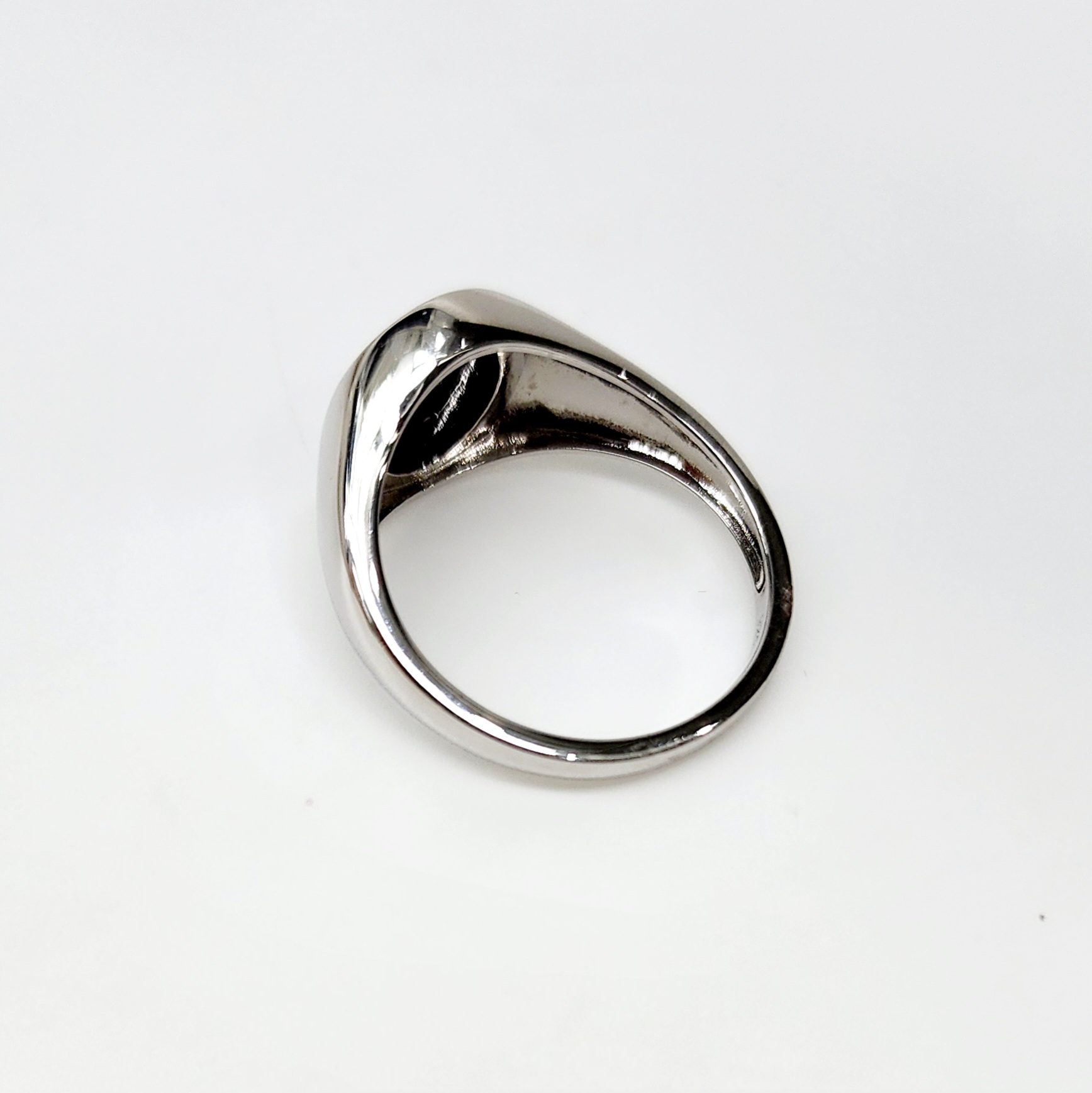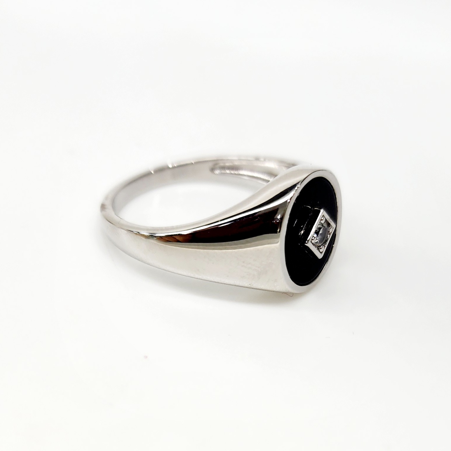 This standout ring features a oval shape natural Onyx gemstone in .925 sterling silver with CZ setting.