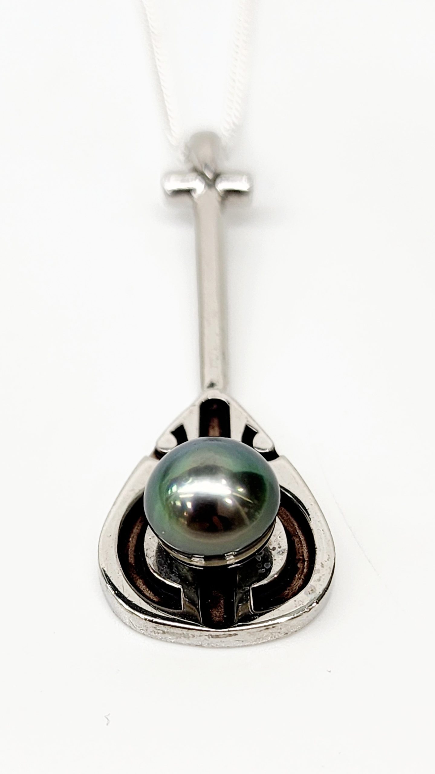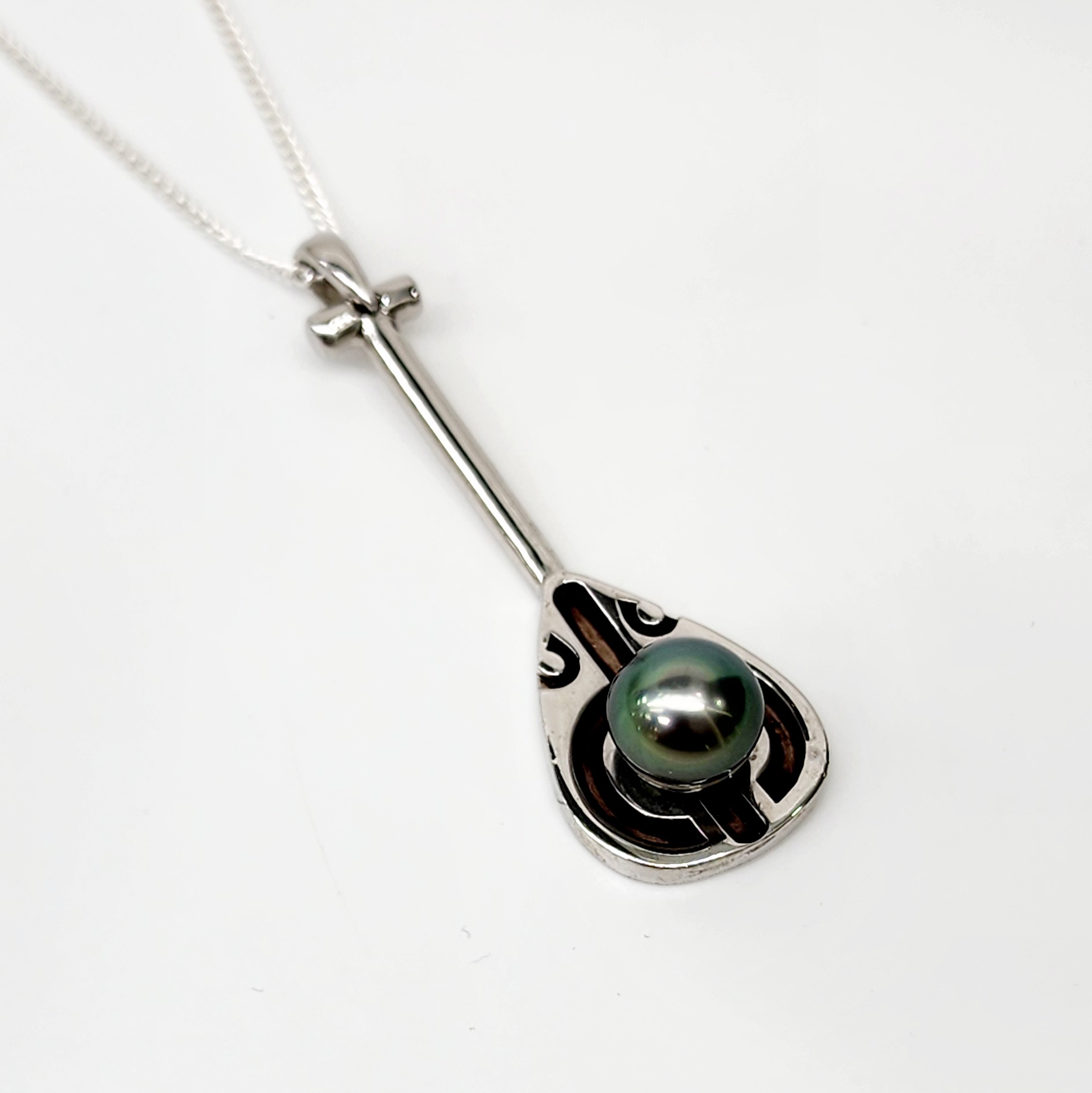 Sterling Silver Paddle Pendant with Round Cook Island Black Pearl