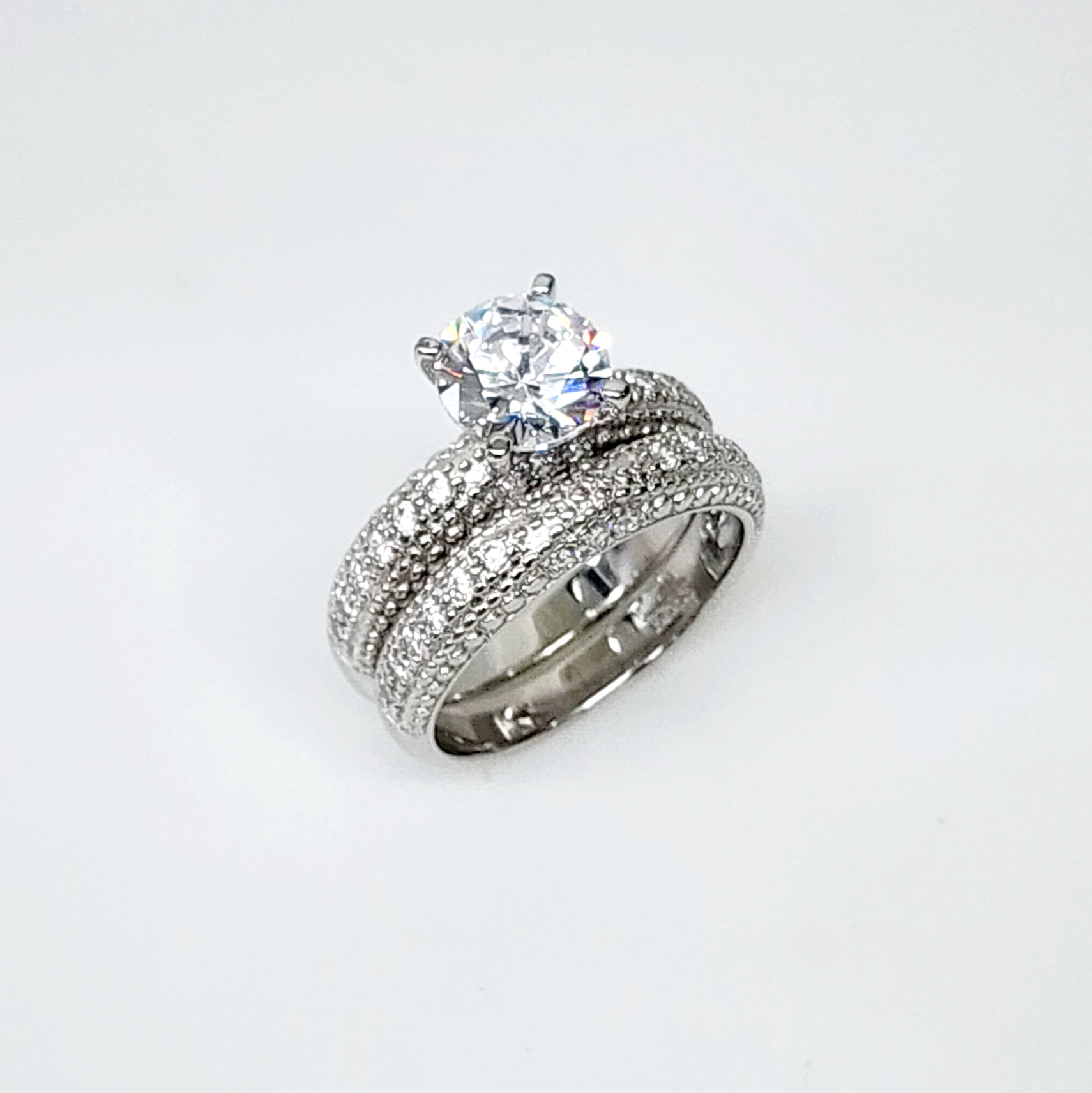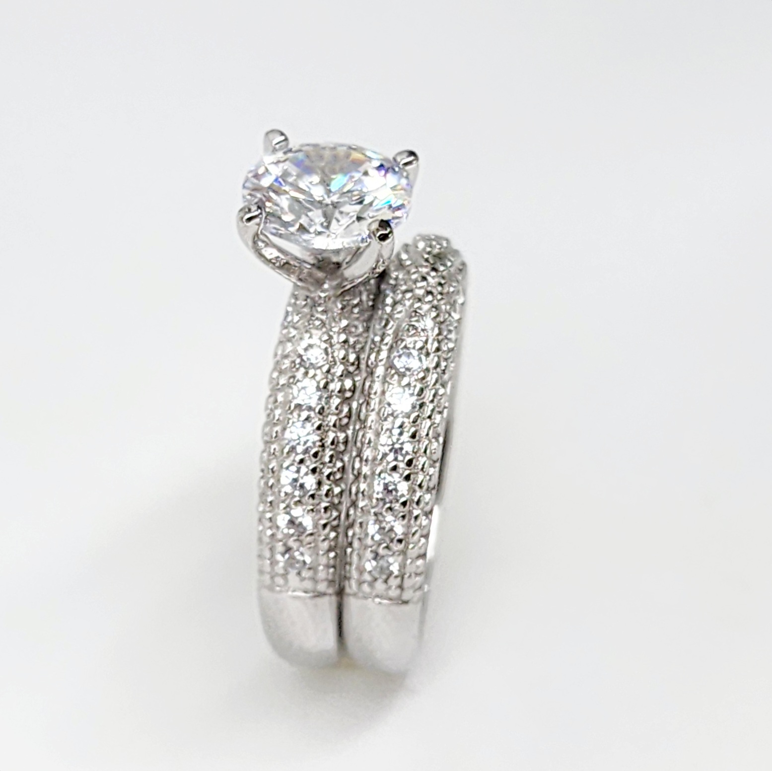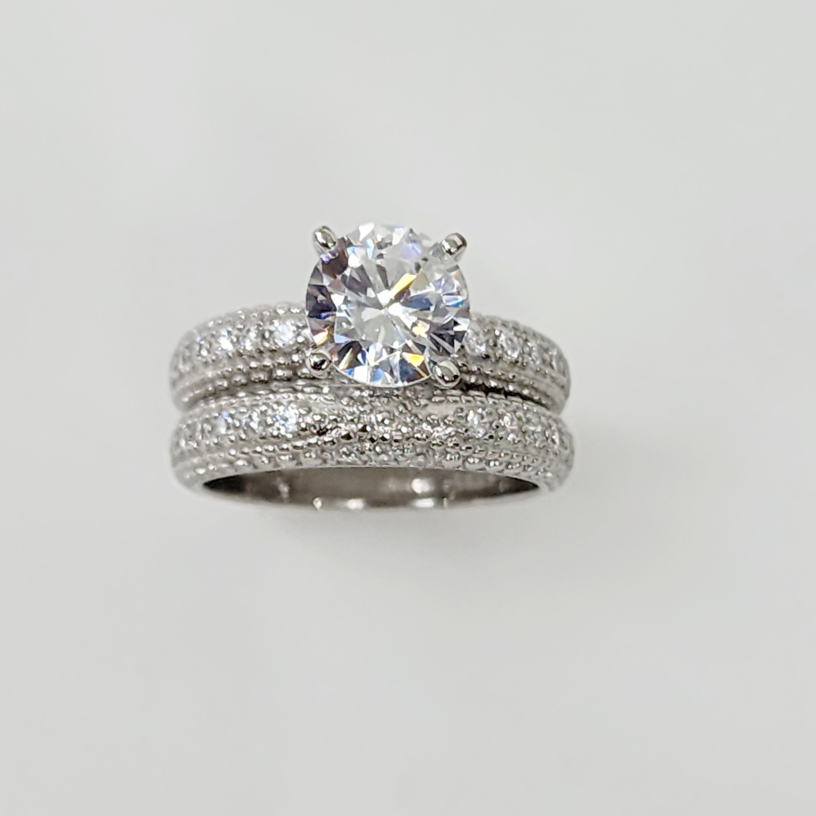 Sterling Silver Round Cut Solitaire Bridal Wedding Set with Matching Micro Pave Wedding Band