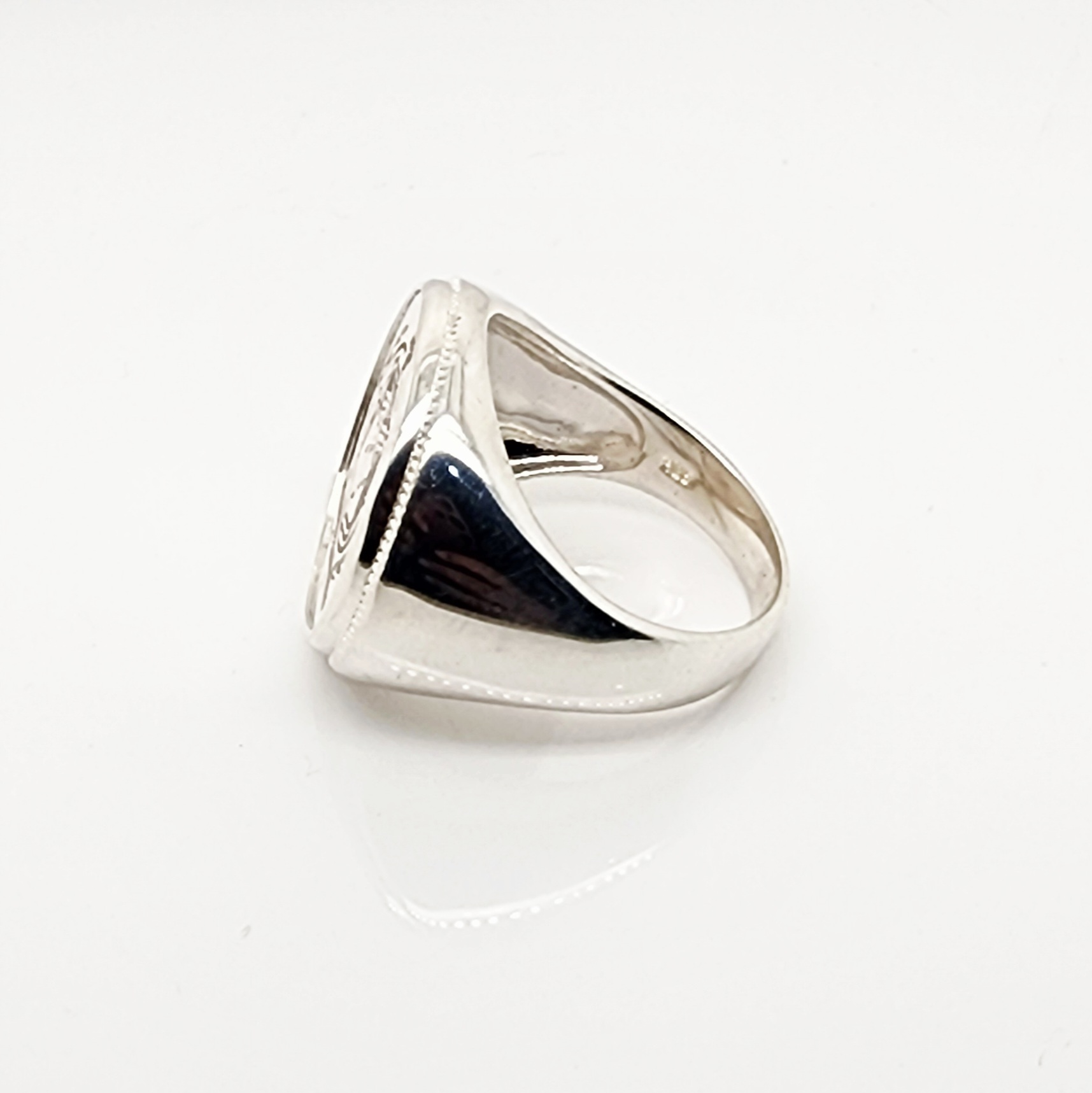 Sterling Silver Samoan Sila Coin Ring with Solid Ring Mount