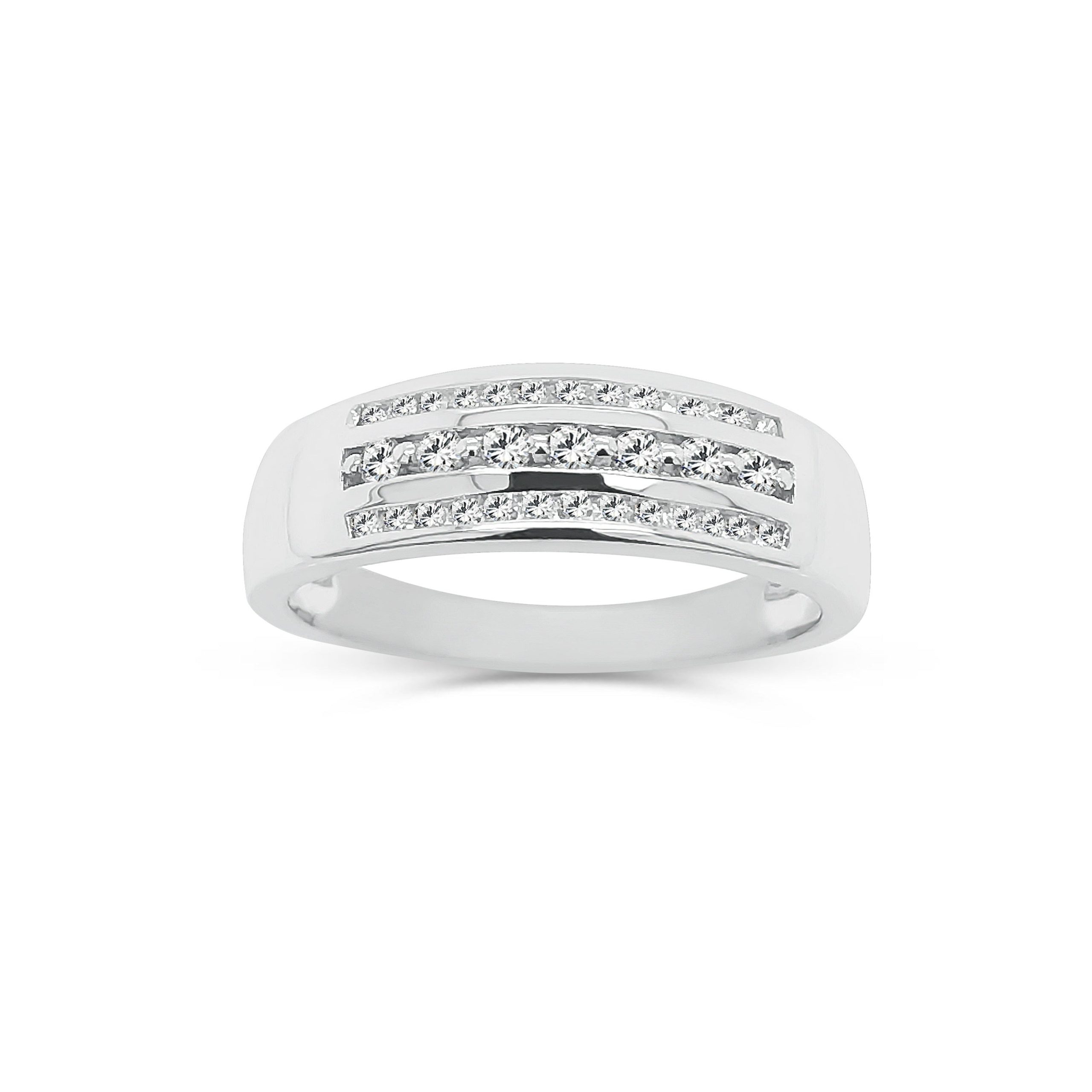 Three Row Ring with 0.25 Carat Diamond Ring in 9ct White Gold
