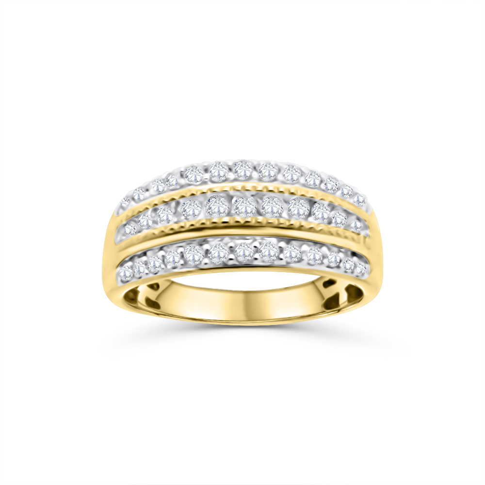Three Row Ring with 0.50ct Diamonds in 10ct Yellow Gold