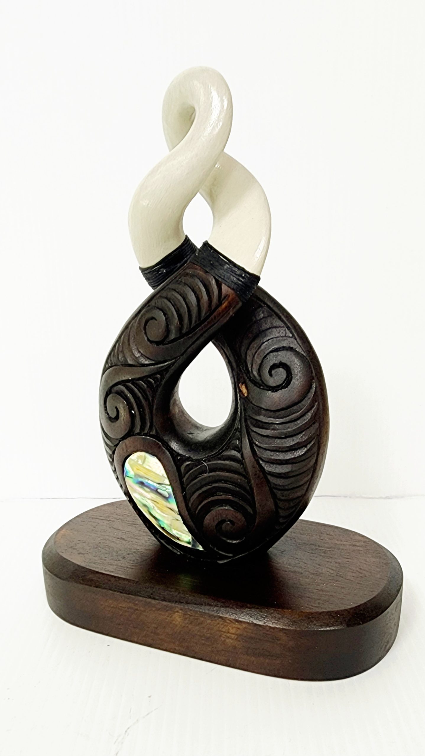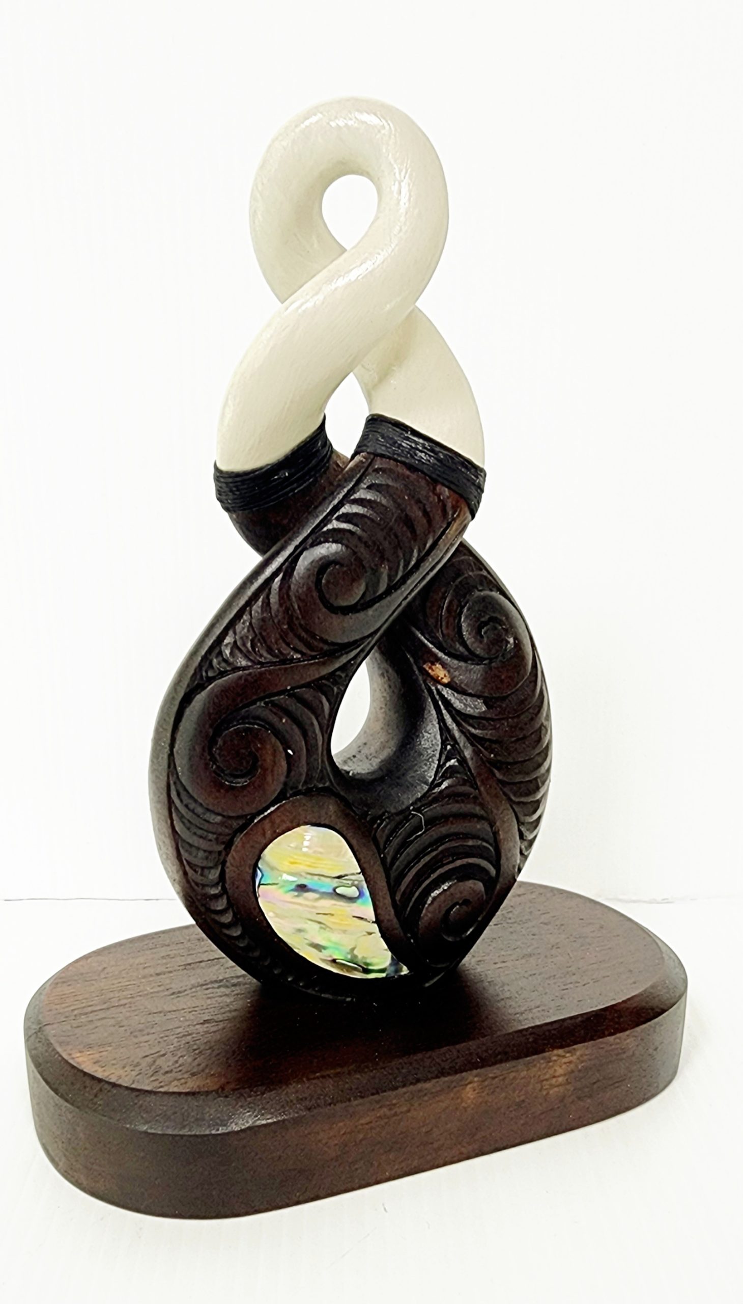 Wooden Carved Twist with White Resin with Paul Shell Inlay on Base 180mm High